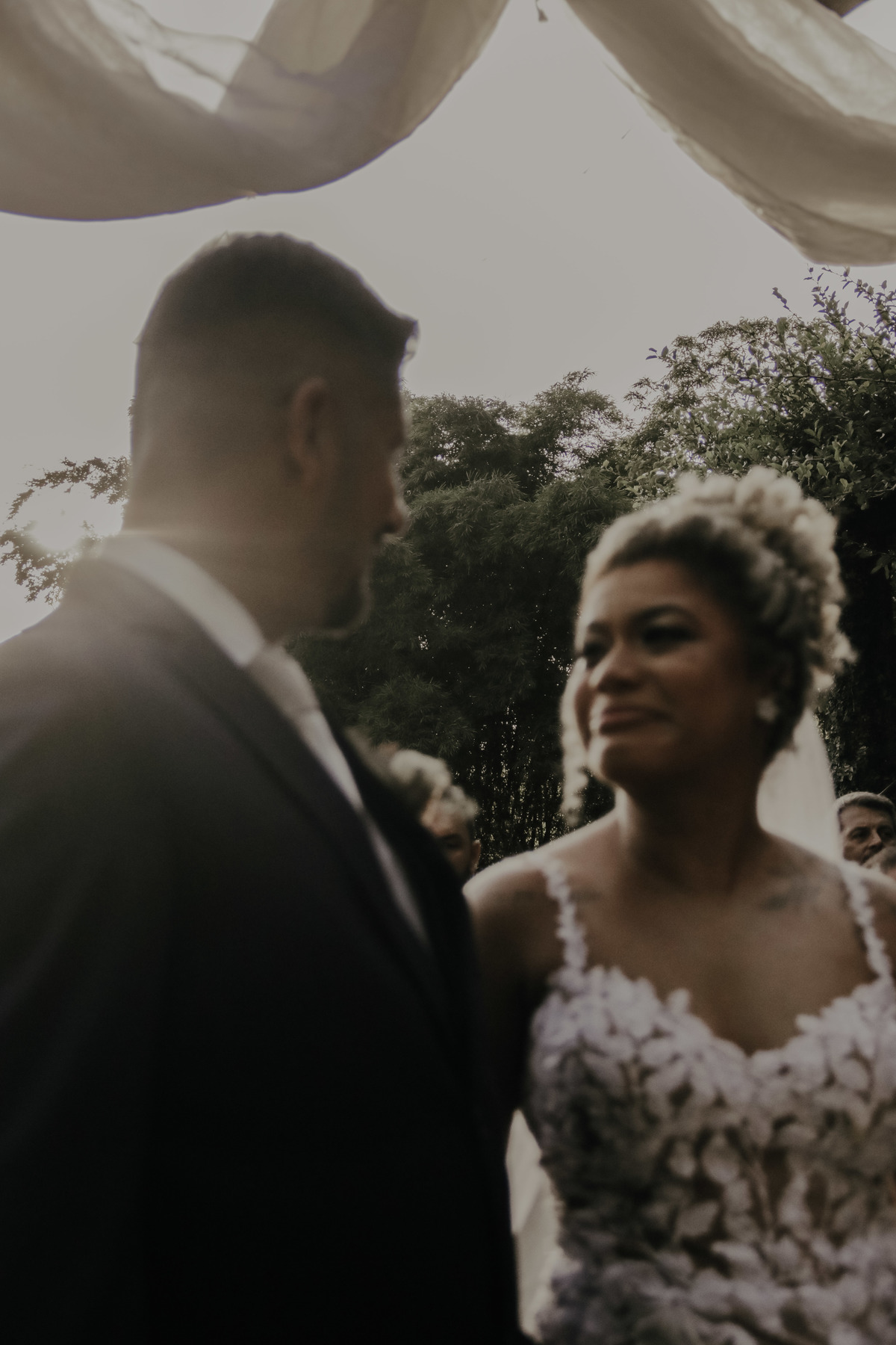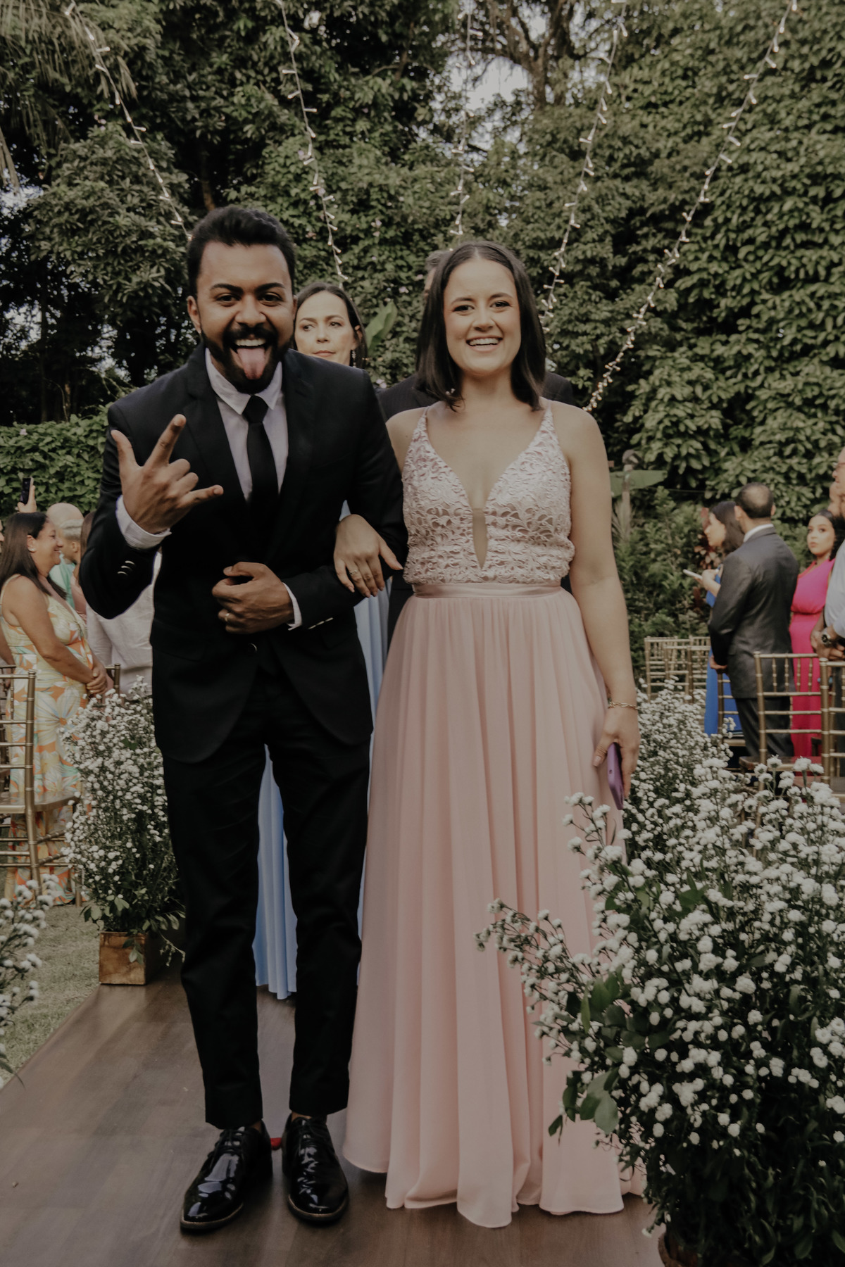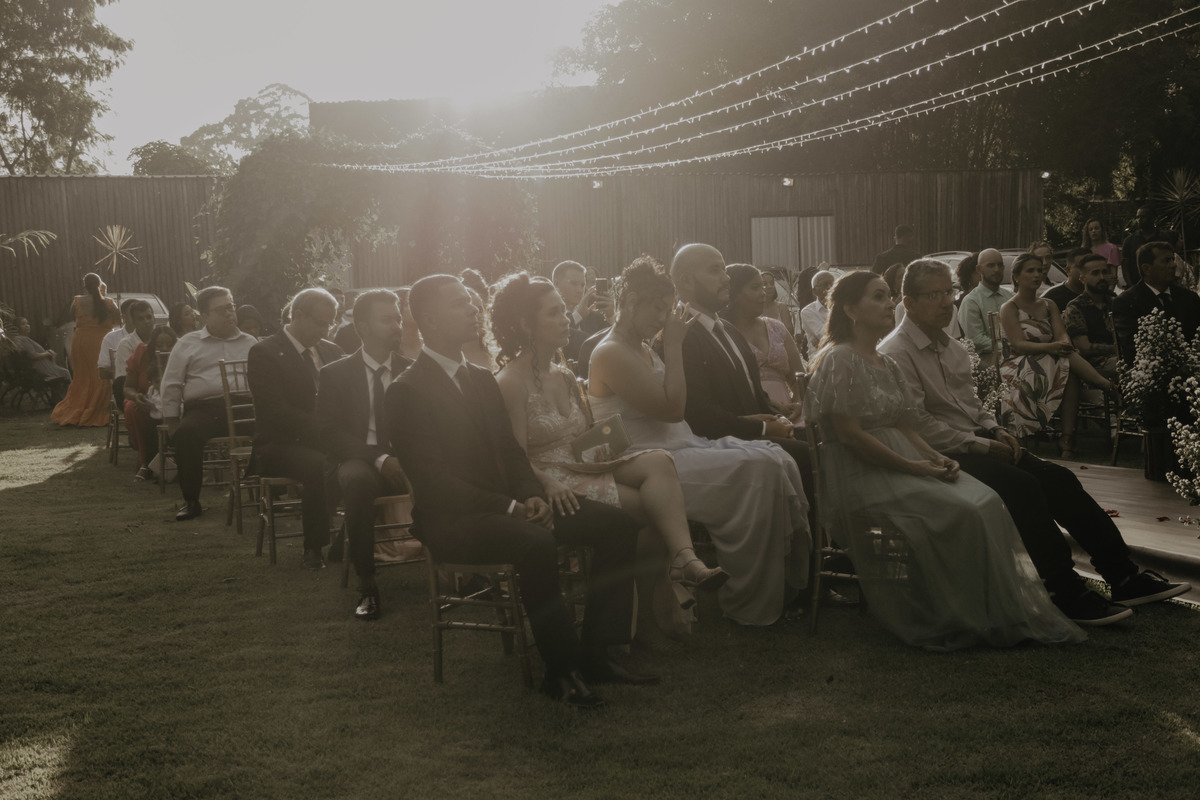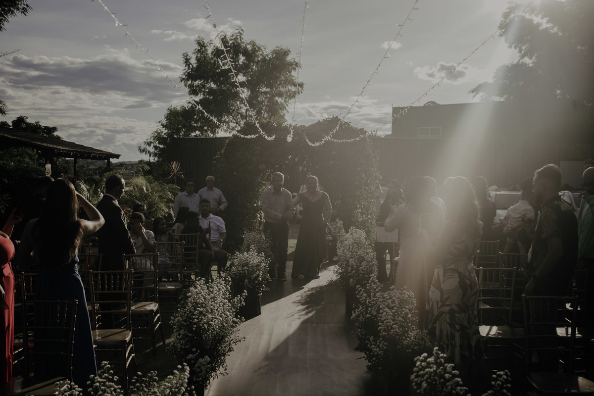 Como nos mesmos dizíamos a Aline é sim uma noiva MUITO mimada por Deus, pois parecia que iria chover e simplesmente na hora da entrada dos noivos e padrinhos teve um por do sol MARAVILHOSO, digno de belas fotos e de boas memórias !