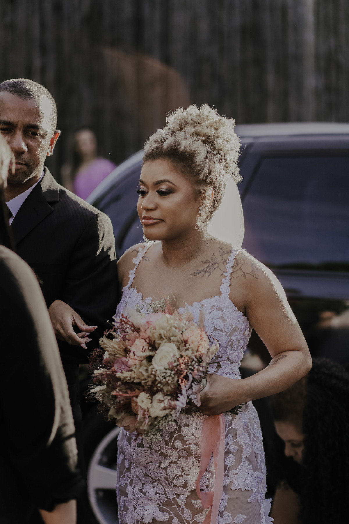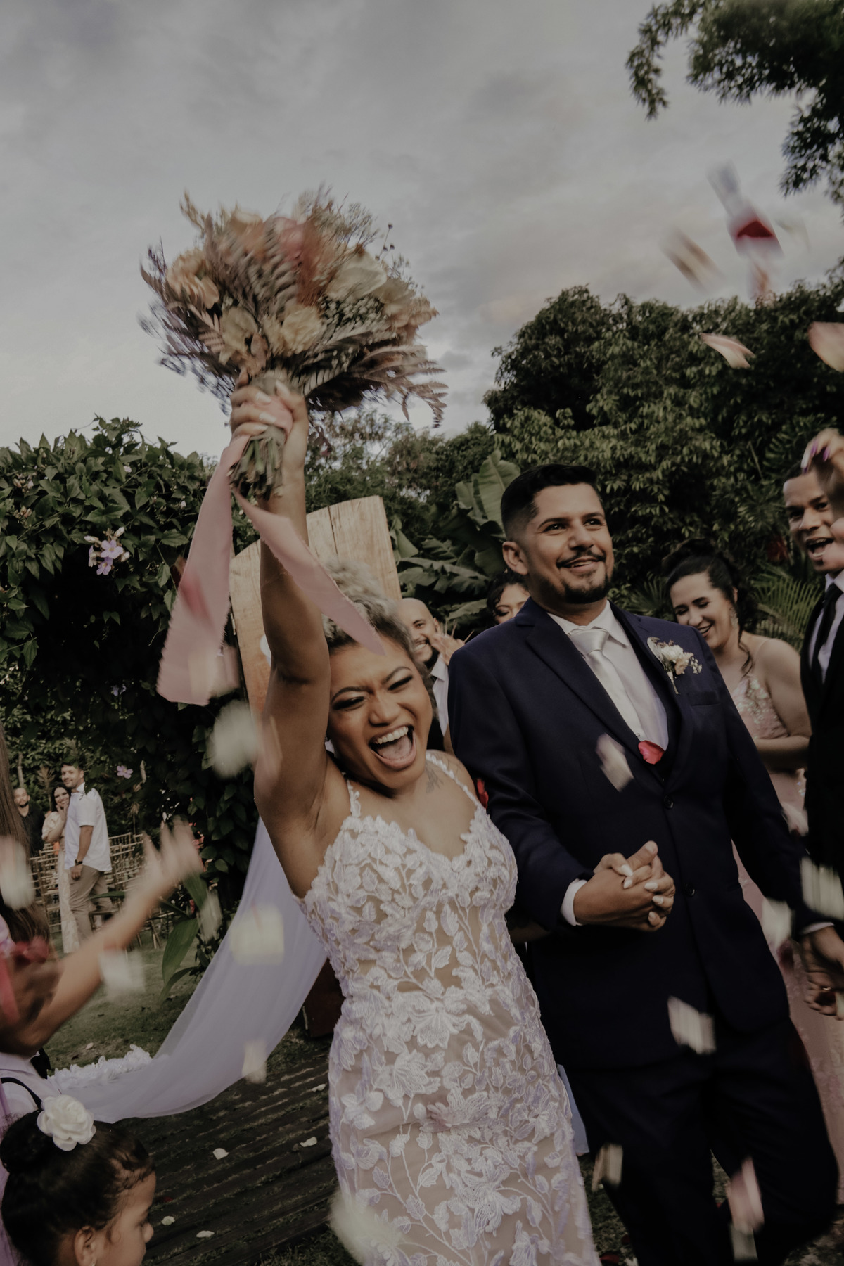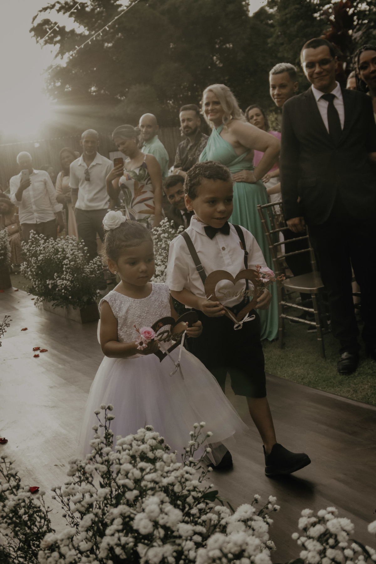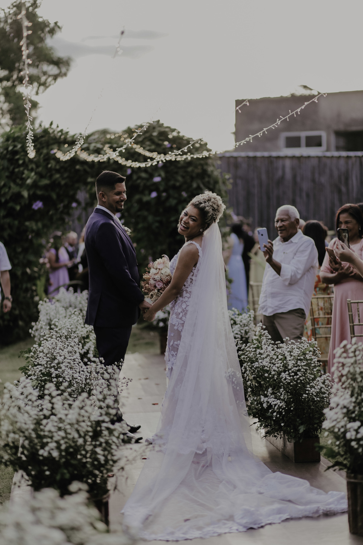 Como nos mesmos dizíamos a Aline é sim uma noiva MUITO mimada por Deus, pois parecia que iria chover e simplesmente na hora da entrada dos noivos e padrinhos teve um por do sol MARAVILHOSO, digno de belas fotos e de boas memórias !