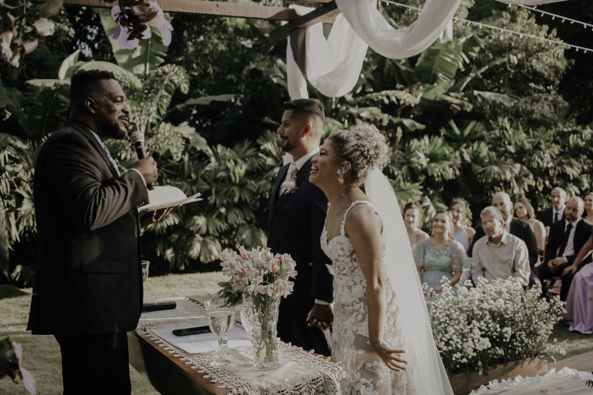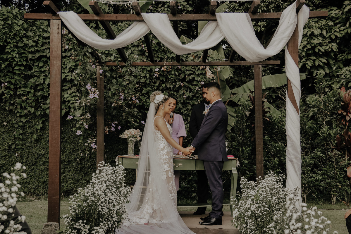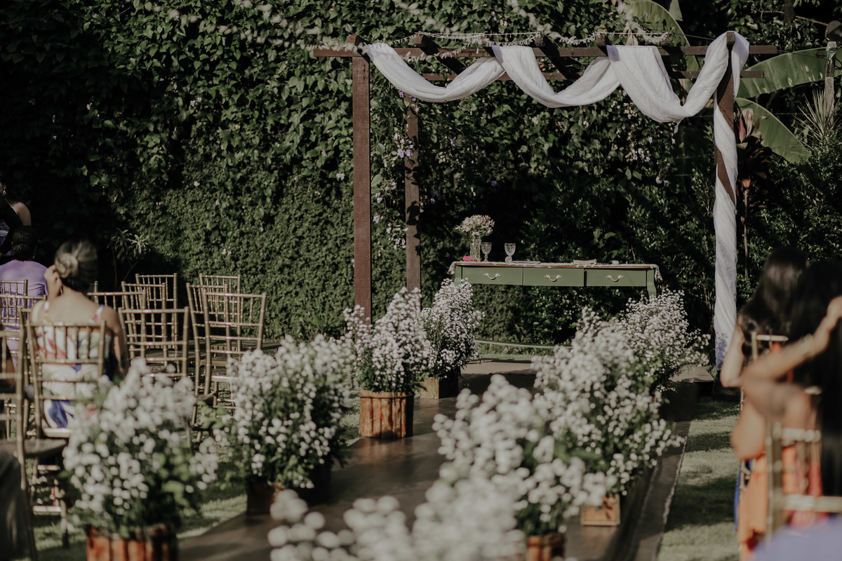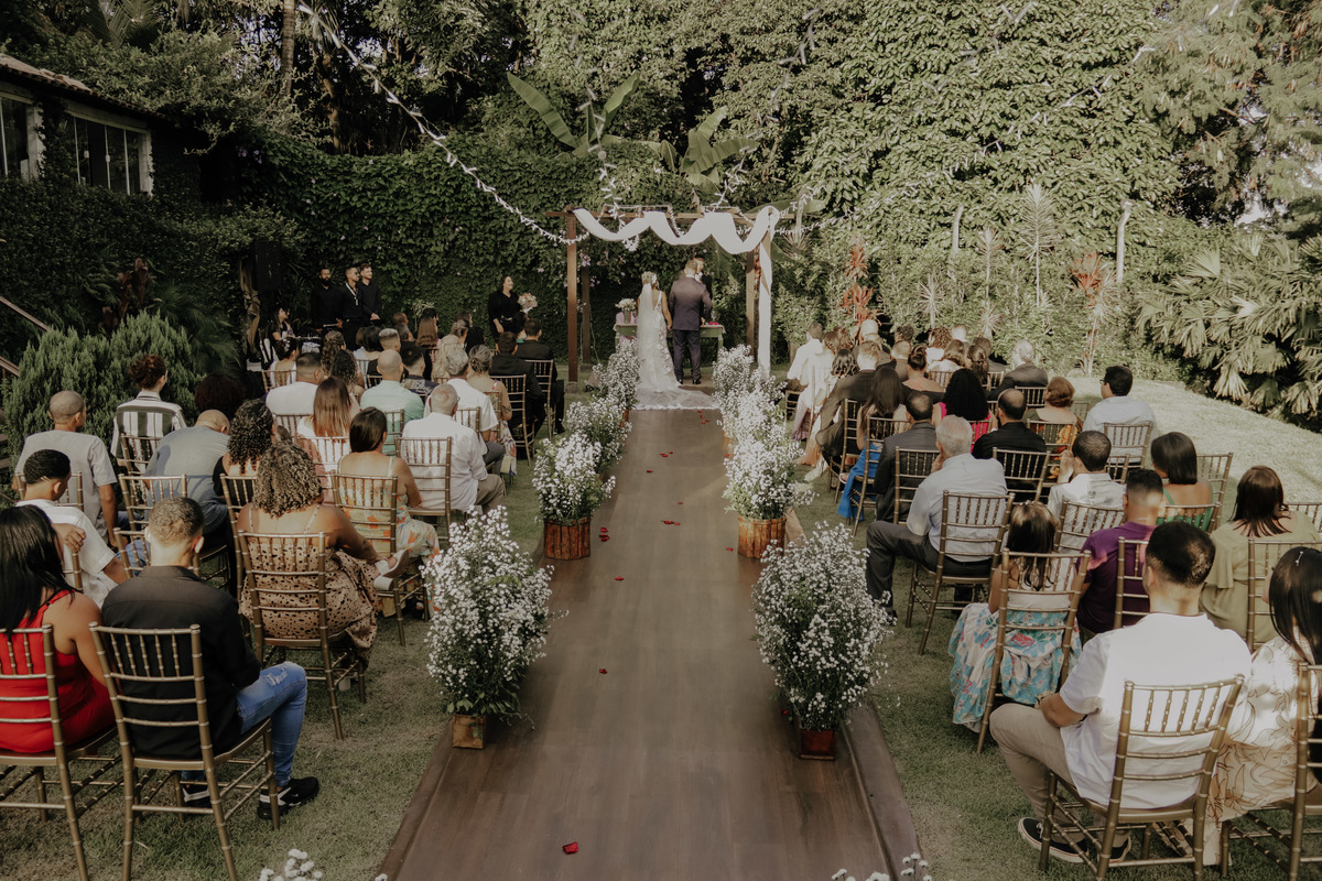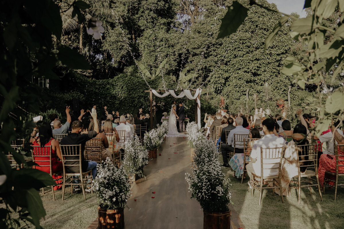Casamento ao ar livre, em meio ao verde e muito amor envolvido. Casal sempre sonhou com um local que fosse envolvido pela natureza, e Deus com seu amoor ele realiza sonhos ne ?
