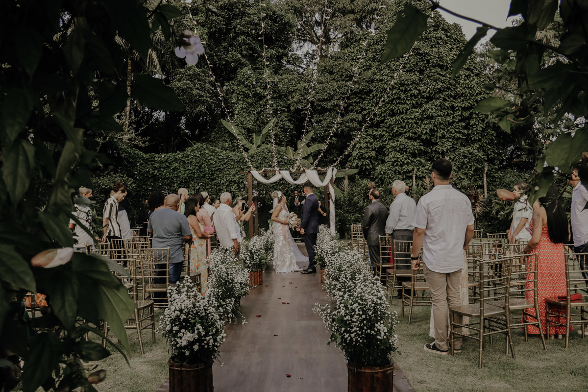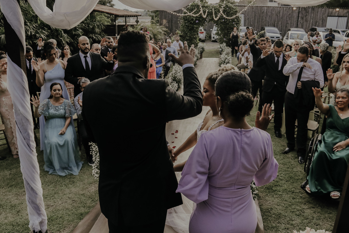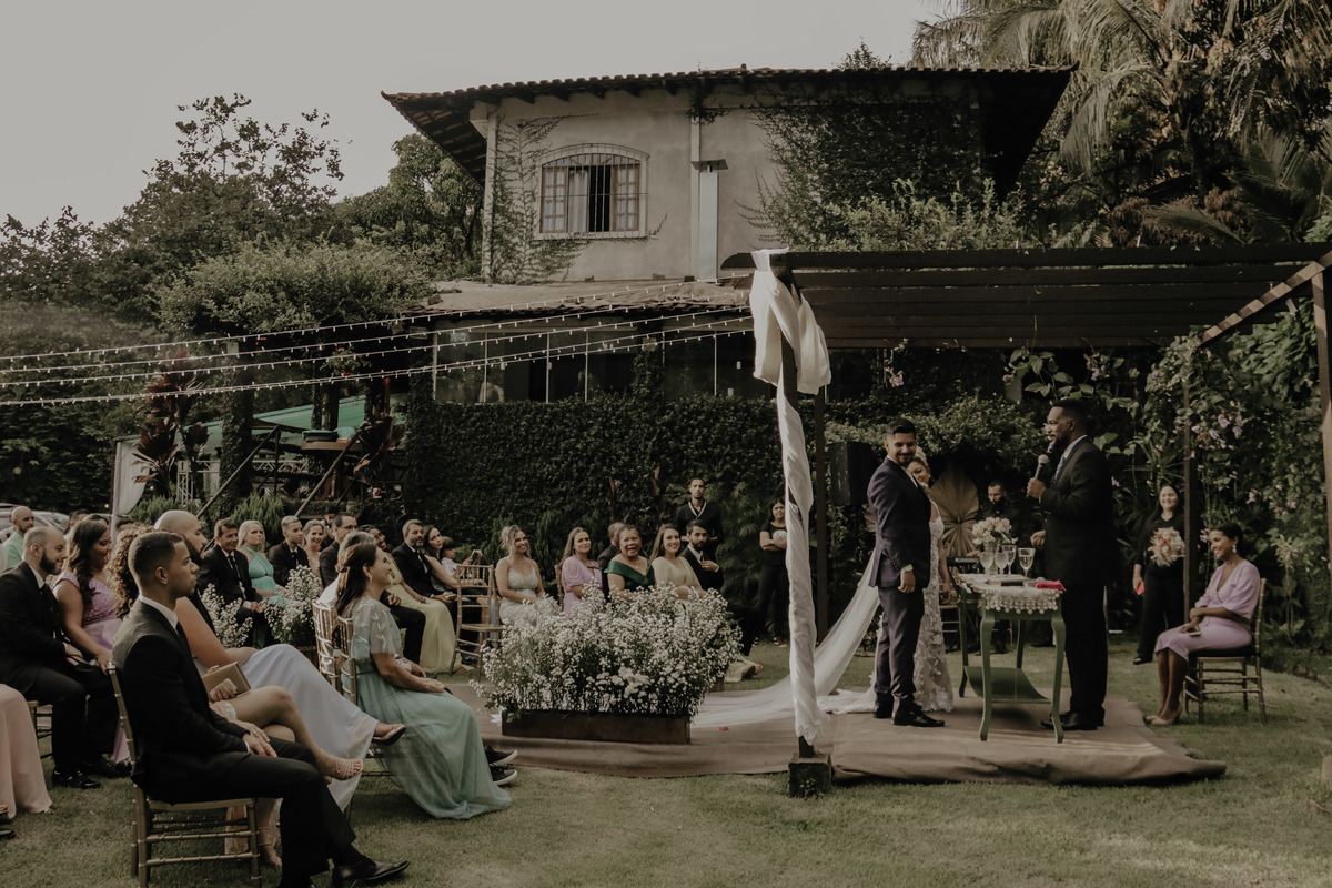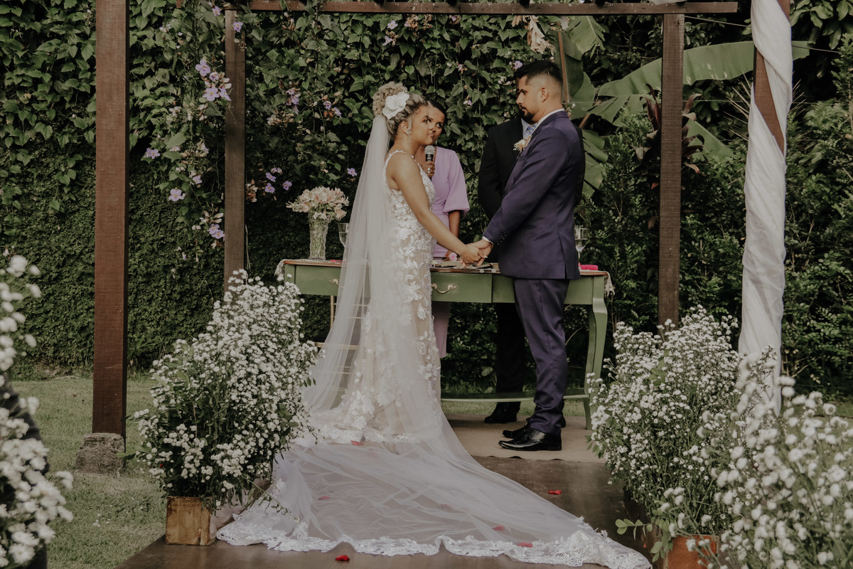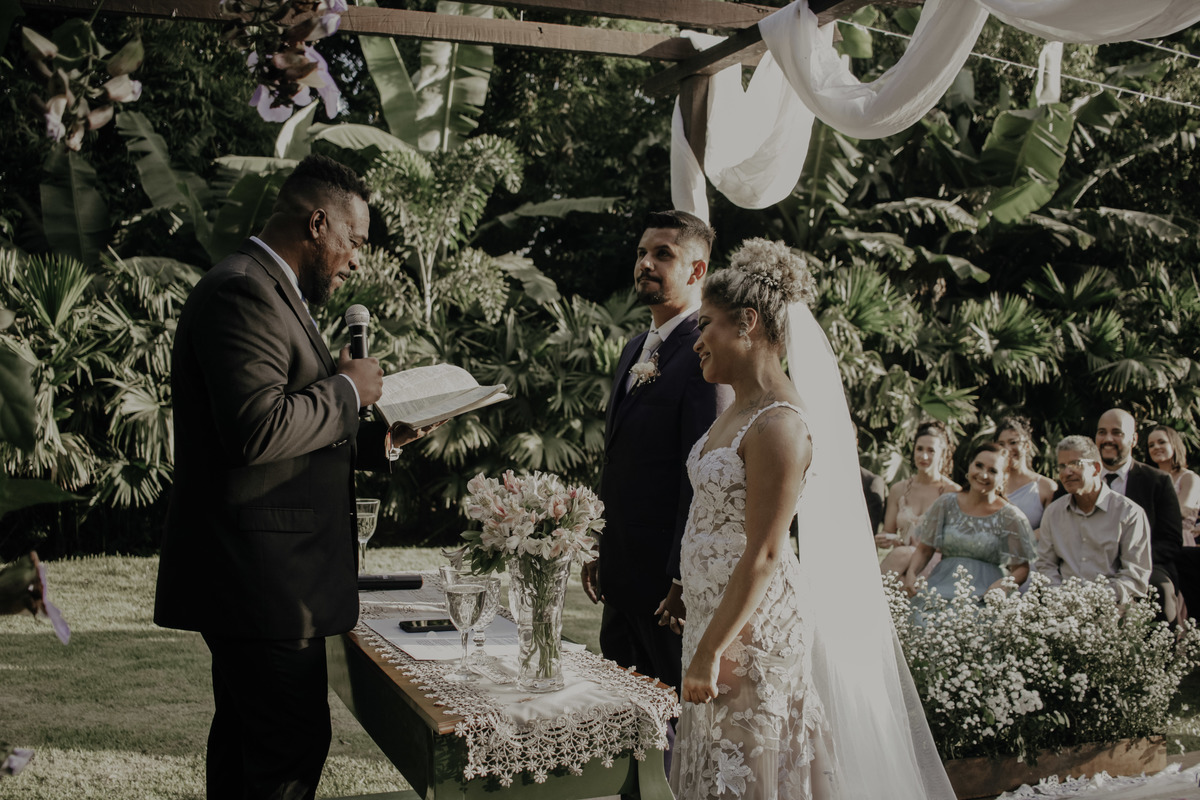 Casamento ao ar livre, em meio ao verde e muito amor envolvido. Casal sempre sonhou com um local que fosse envolvido pela natureza, e Deus com seu amoor ele realiza sonhos ne ?