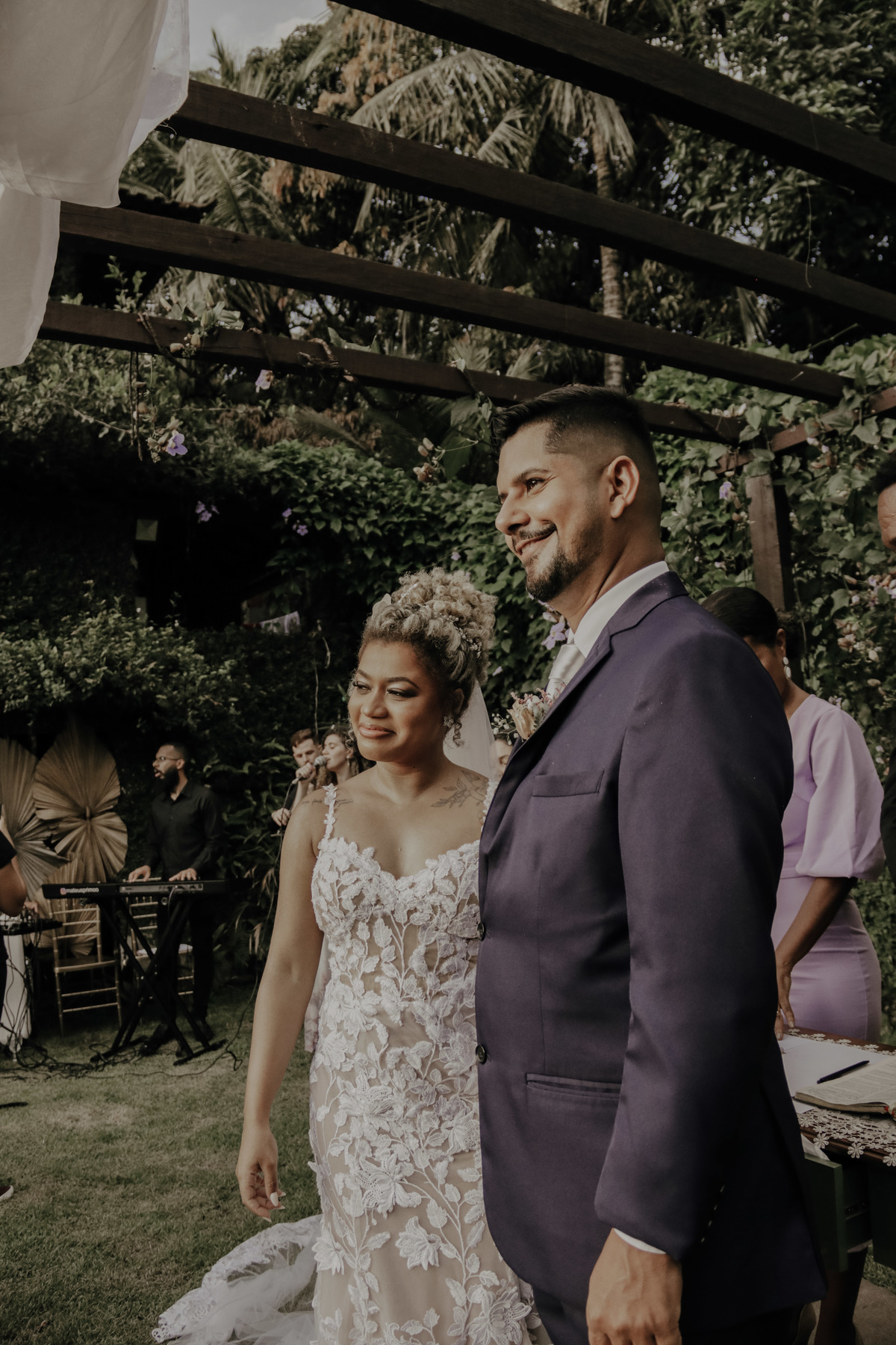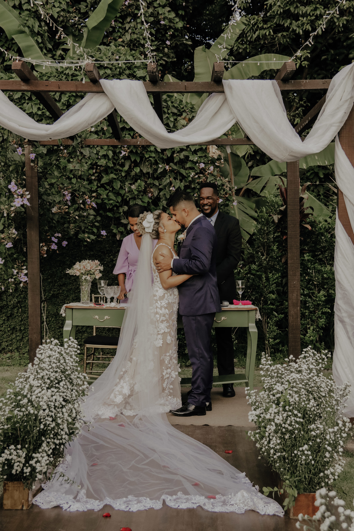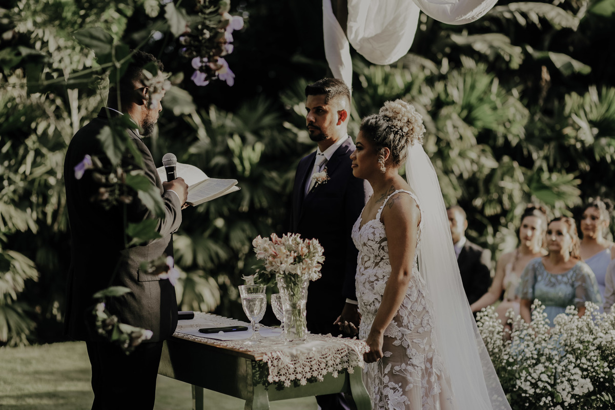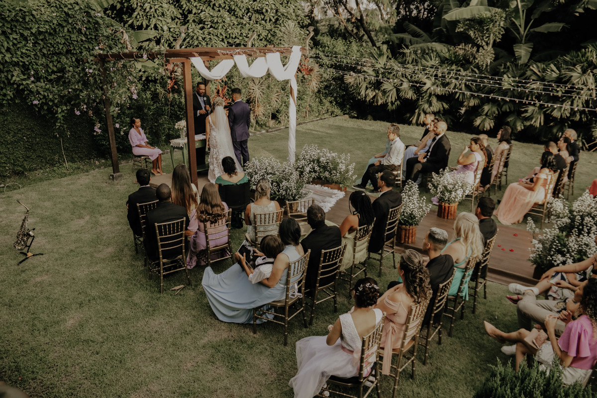 Casamento ao ar livre, em meio ao verde e muito amor envolvido. Casal sempre sonhou com um local que fosse envolvido pela natureza, e Deus com seu amoor ele realiza sonhos ne ?