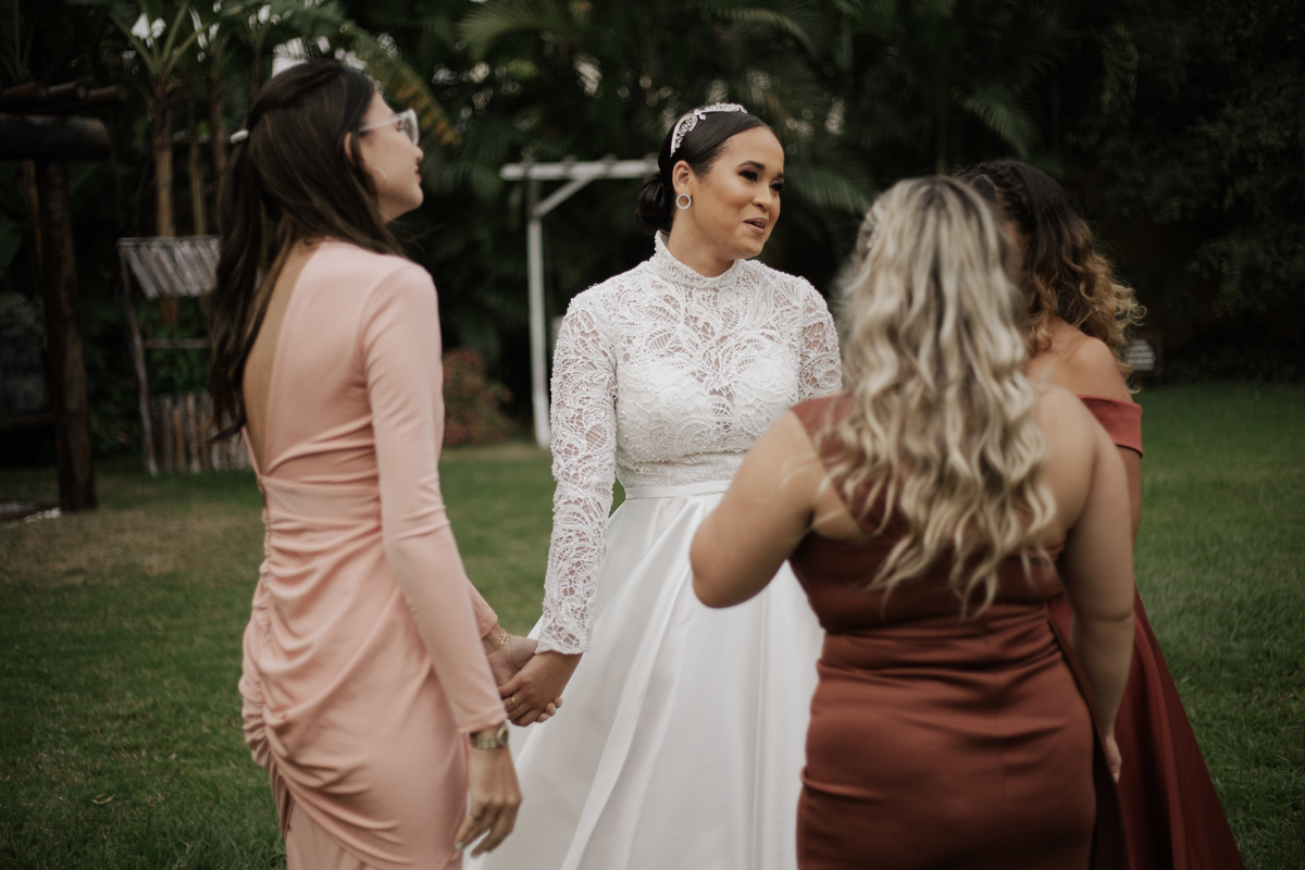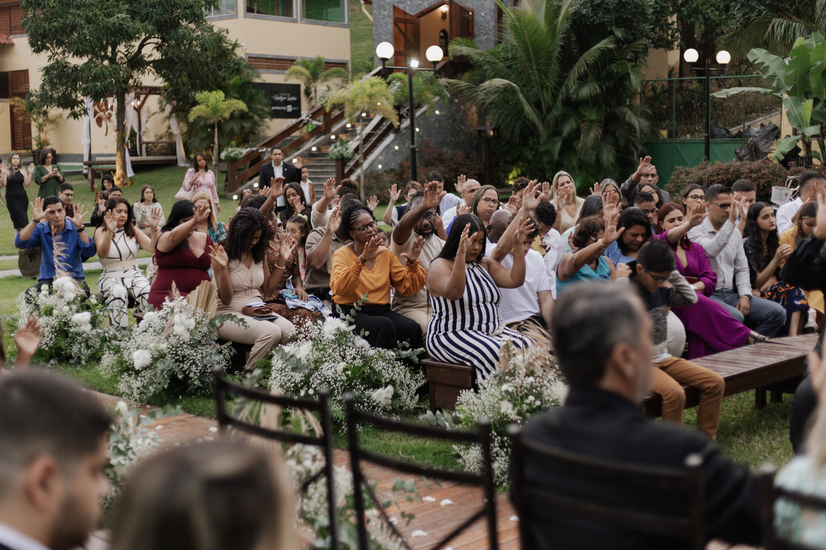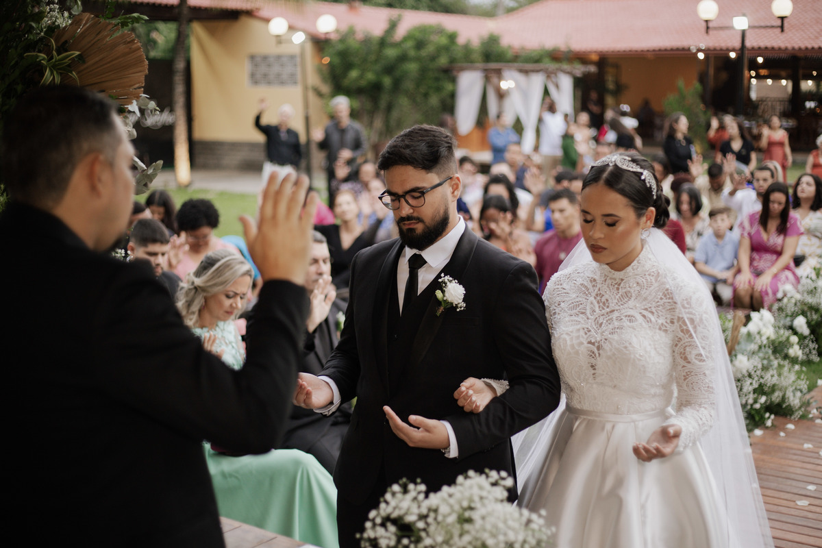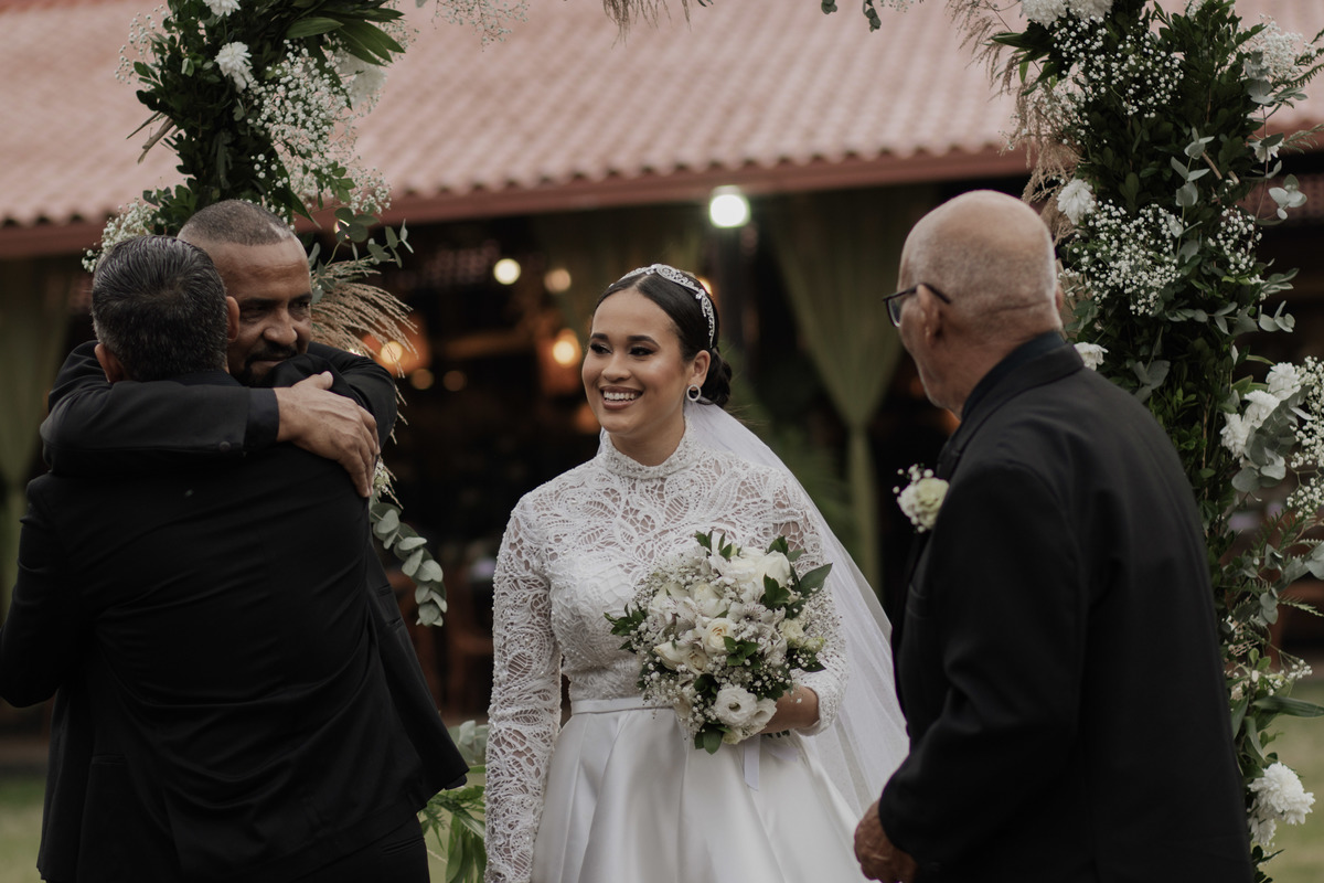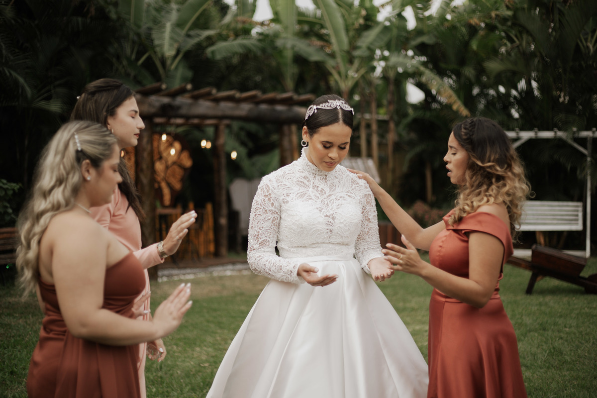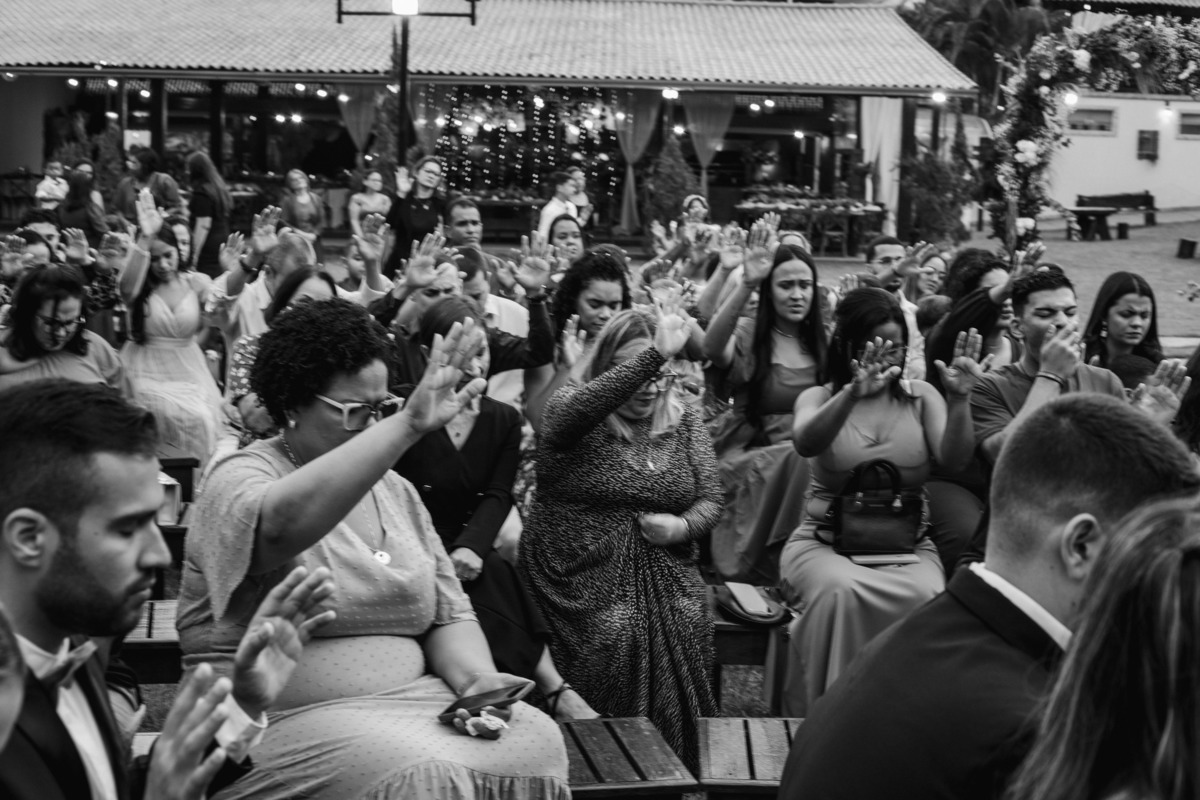 No grande dia aconteceu de TUDO: entrega de buquê, first look com as madrinhas e noiva pediu para que uma suas madrinhas orasse por ela, teve first touch com o noivo (muito emocionante inclusive aaaa), aconteceu entradas emocionantes por pessoas que eram joias paras os noivos, além de rolar uma festa cristã JAMAIS vistaaaaa por que foi SUPER SUPER SUPER animada com fotos no final com TODOS os convidados de um jeito diferente do tradicional (eles foram de mesa em mesa no tempo de uma musica para pularem esta parte mais cansativa das fotos e torna-las em algo divertido como eles) kkk