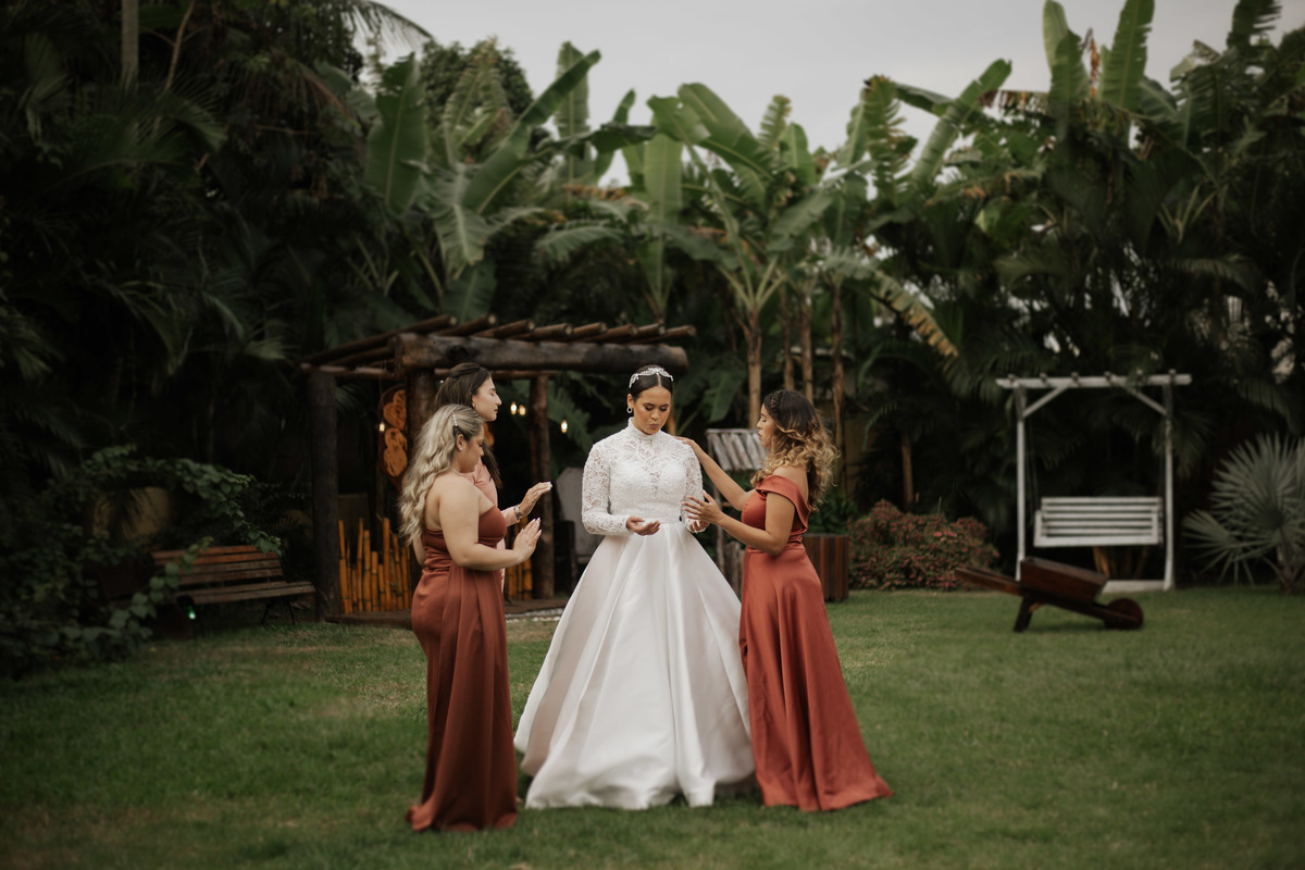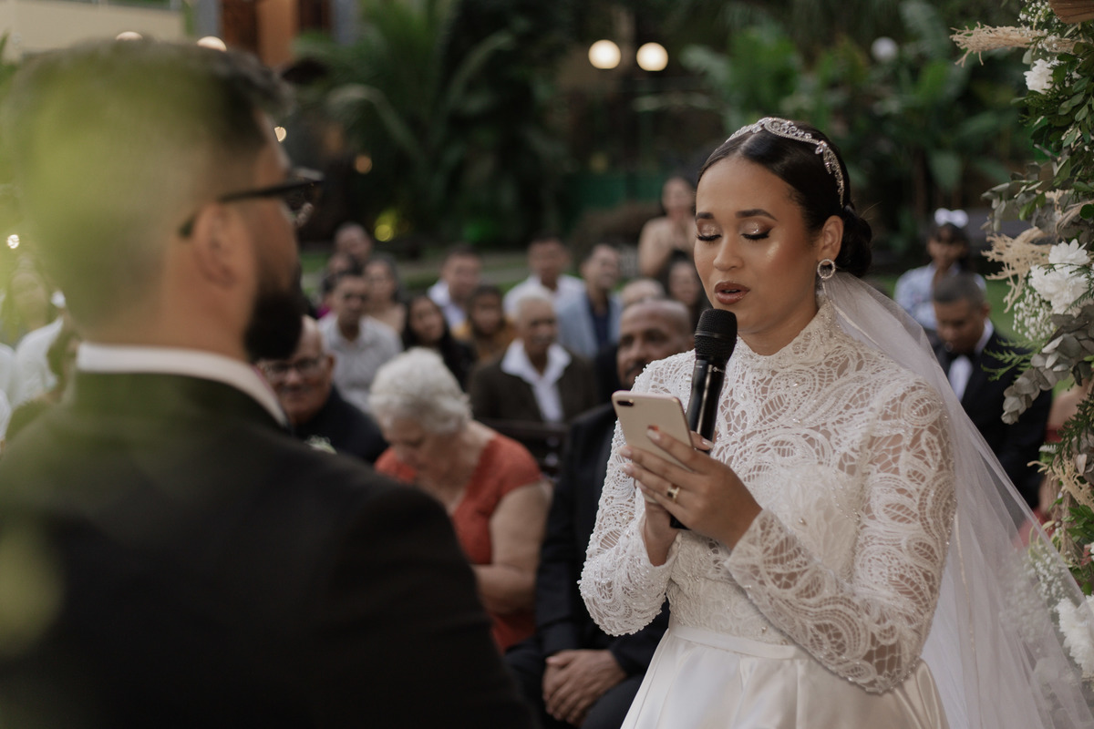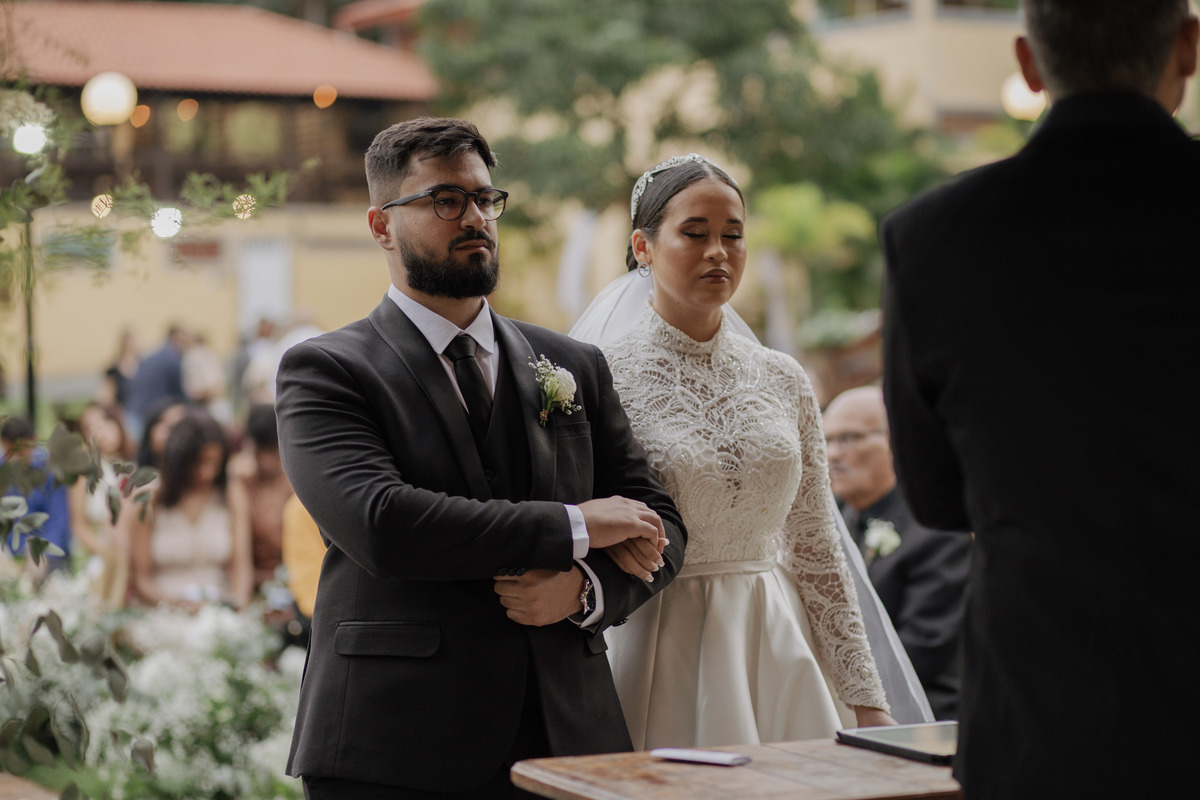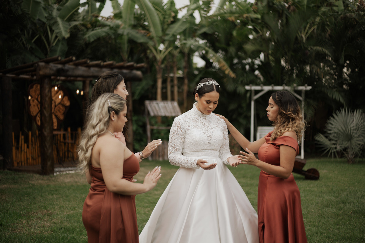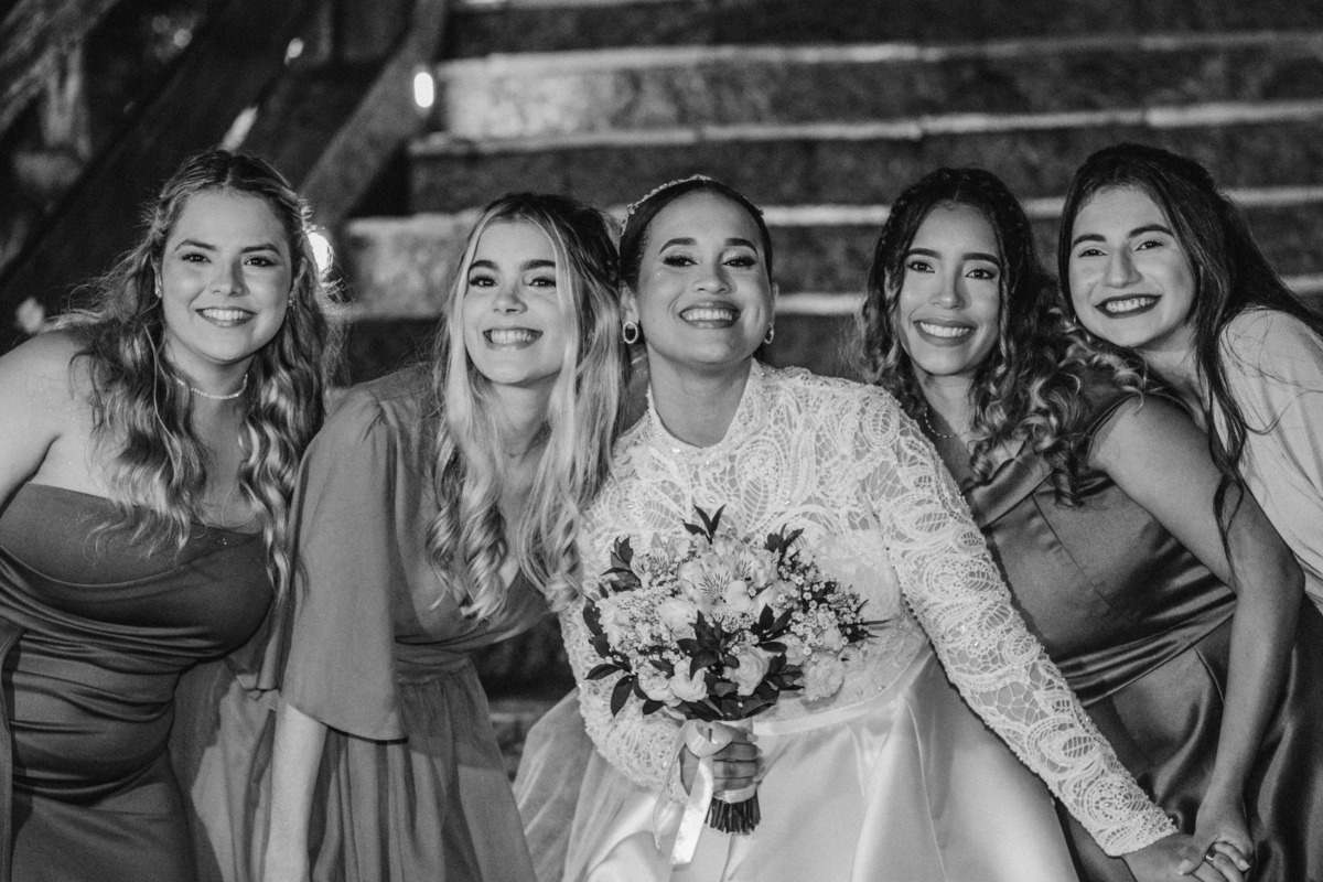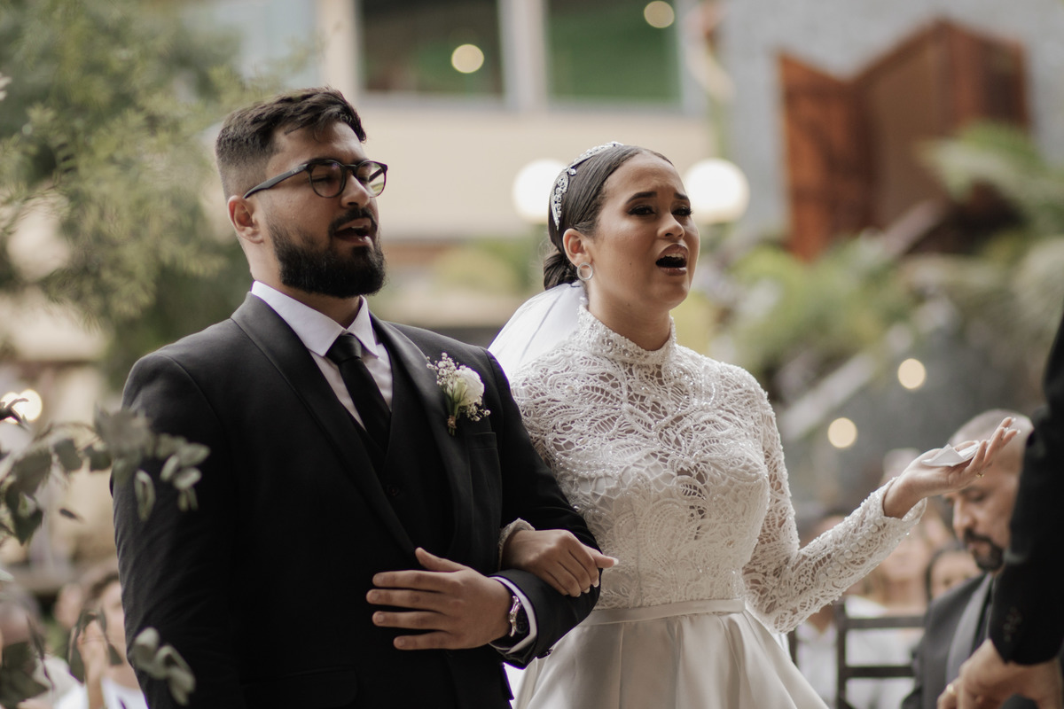 No grande dia aconteceu de TUDO: entrega de buquê, first look com as madrinhas e noiva pediu para que uma suas madrinhas orasse por ela, teve first touch com o noivo (muito emocionante inclusive aaaa), aconteceu entradas emocionantes por pessoas que eram joias paras os noivos, além de rolar uma festa cristã JAMAIS vistaaaaa por que foi SUPER SUPER SUPER animada com fotos no final com TODOS os convidados de um jeito diferente do tradicional (eles foram de mesa em mesa no tempo de uma musica para pularem esta parte mais cansativa das fotos e torna-las em algo divertido como eles) kkk