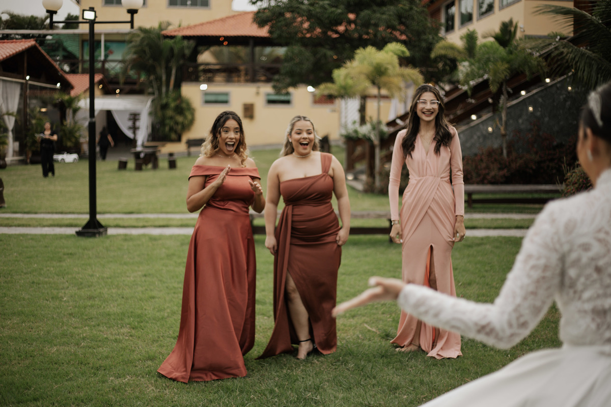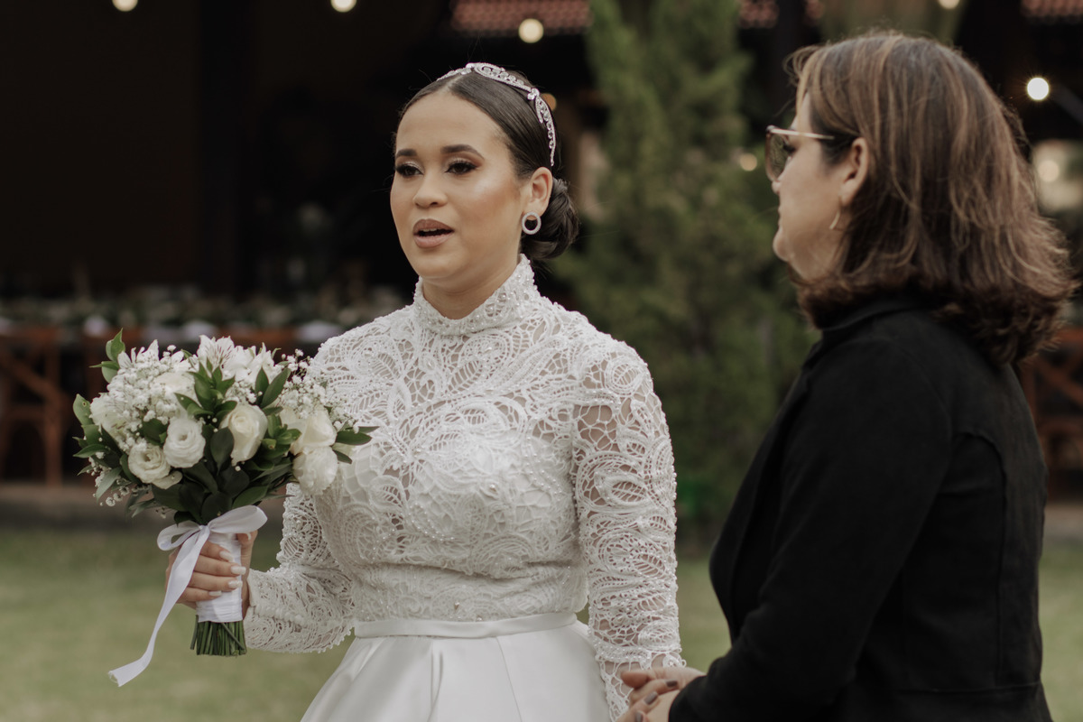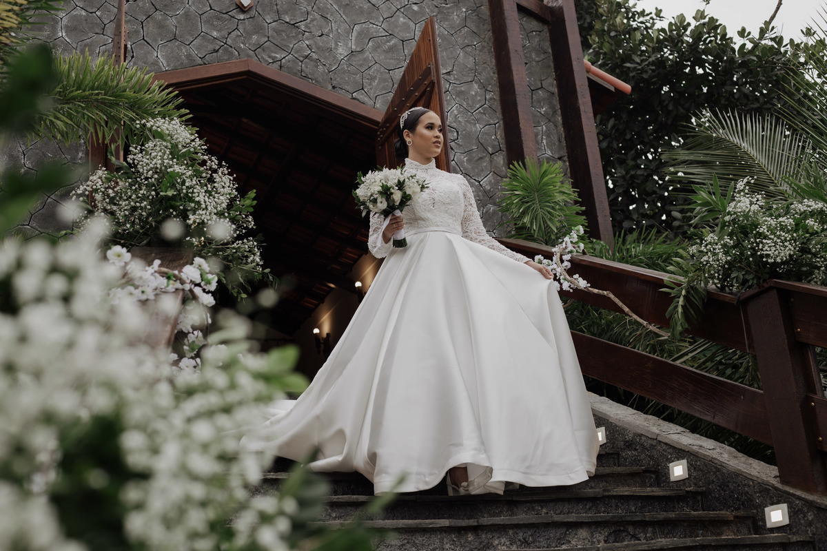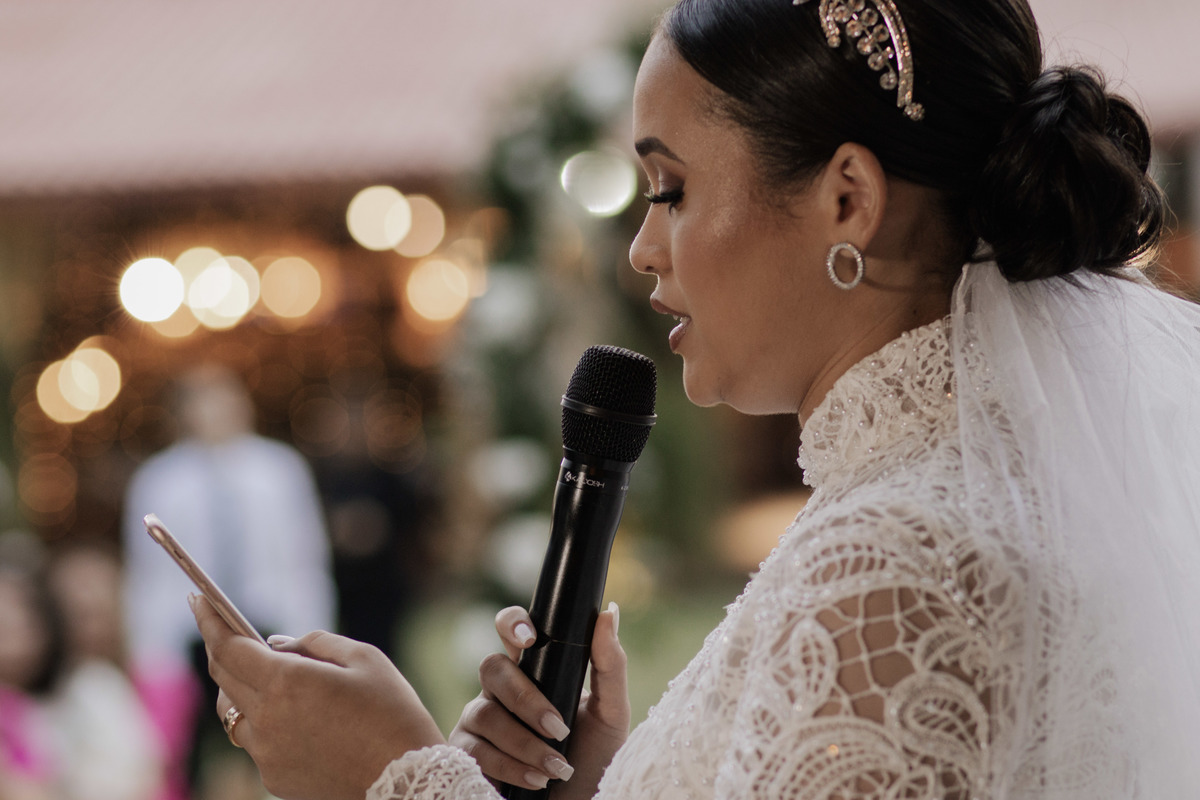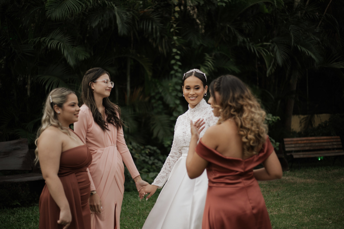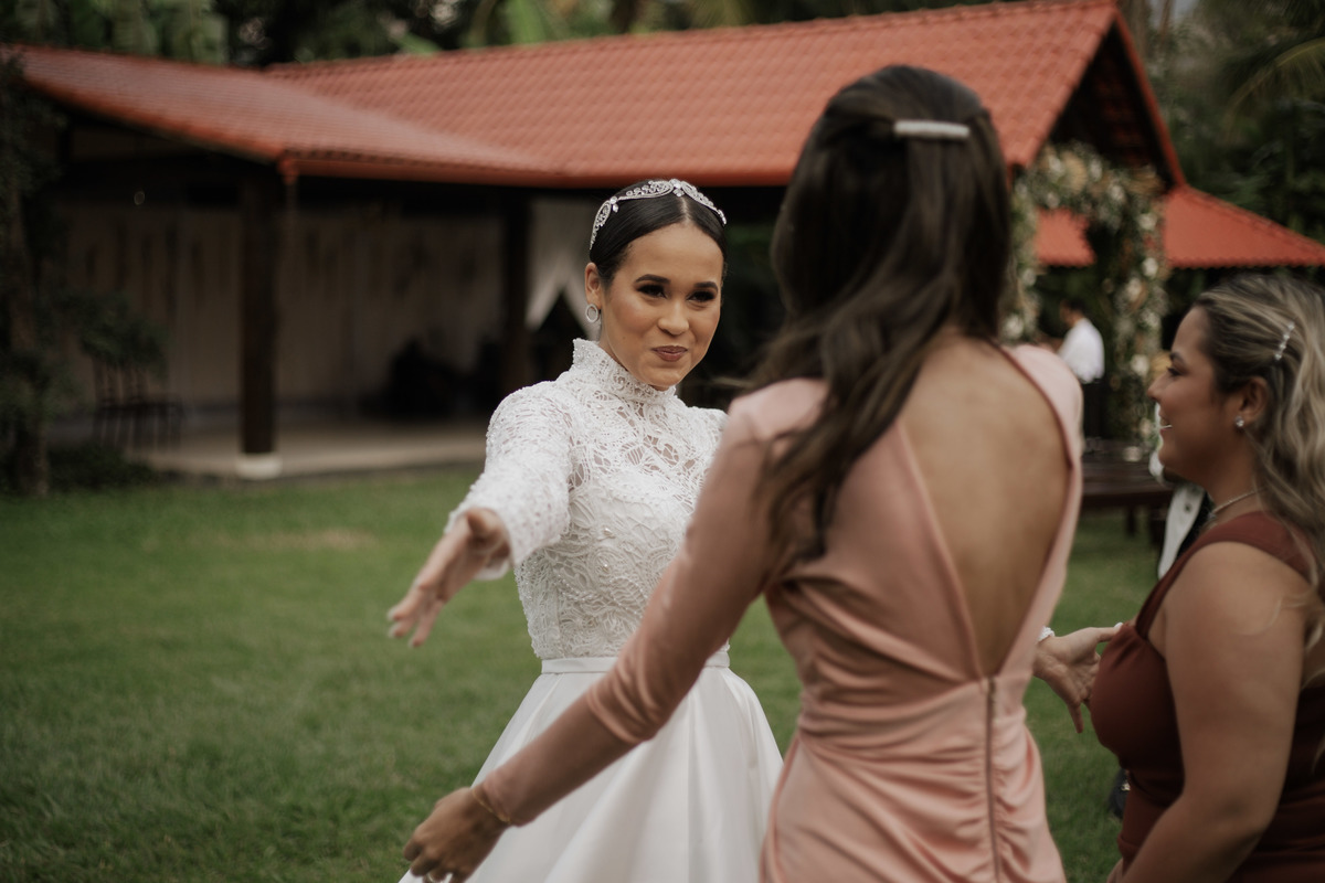 No grande dia aconteceu de TUDO: entrega de buquê, first look com as madrinhas e noiva pediu para que uma suas madrinhas orasse por ela, teve first touch com o noivo (muito emocionante inclusive aaaa), aconteceu entradas emocionantes por pessoas que eram joias paras os noivos, além de rolar uma festa cristã JAMAIS vistaaaaa por que foi SUPER SUPER SUPER animada com fotos no final com TODOS os convidados de um jeito diferente do tradicional (eles foram de mesa em mesa no tempo de uma musica para pularem esta parte mais cansativa das fotos e torna-las em algo divertido como eles) kkk