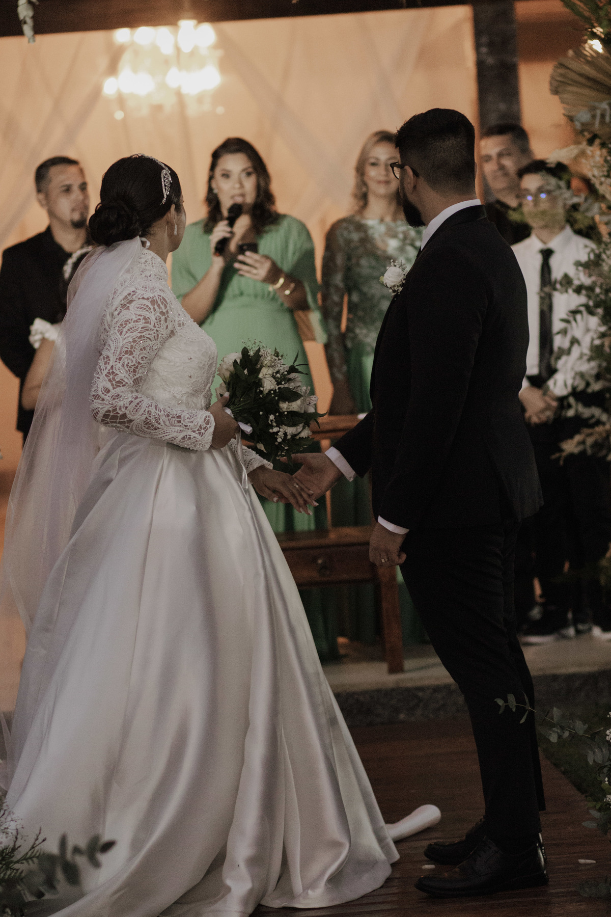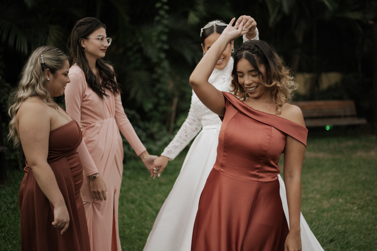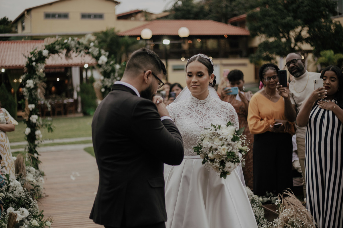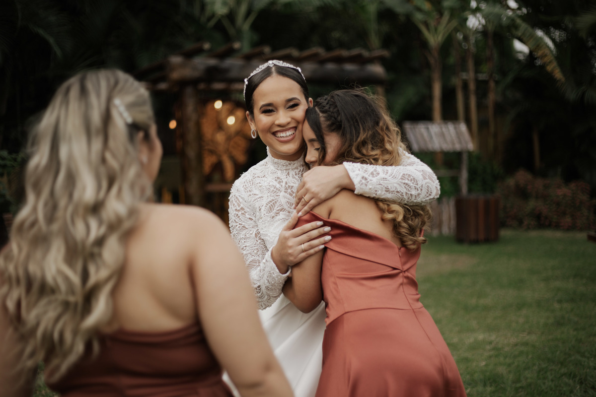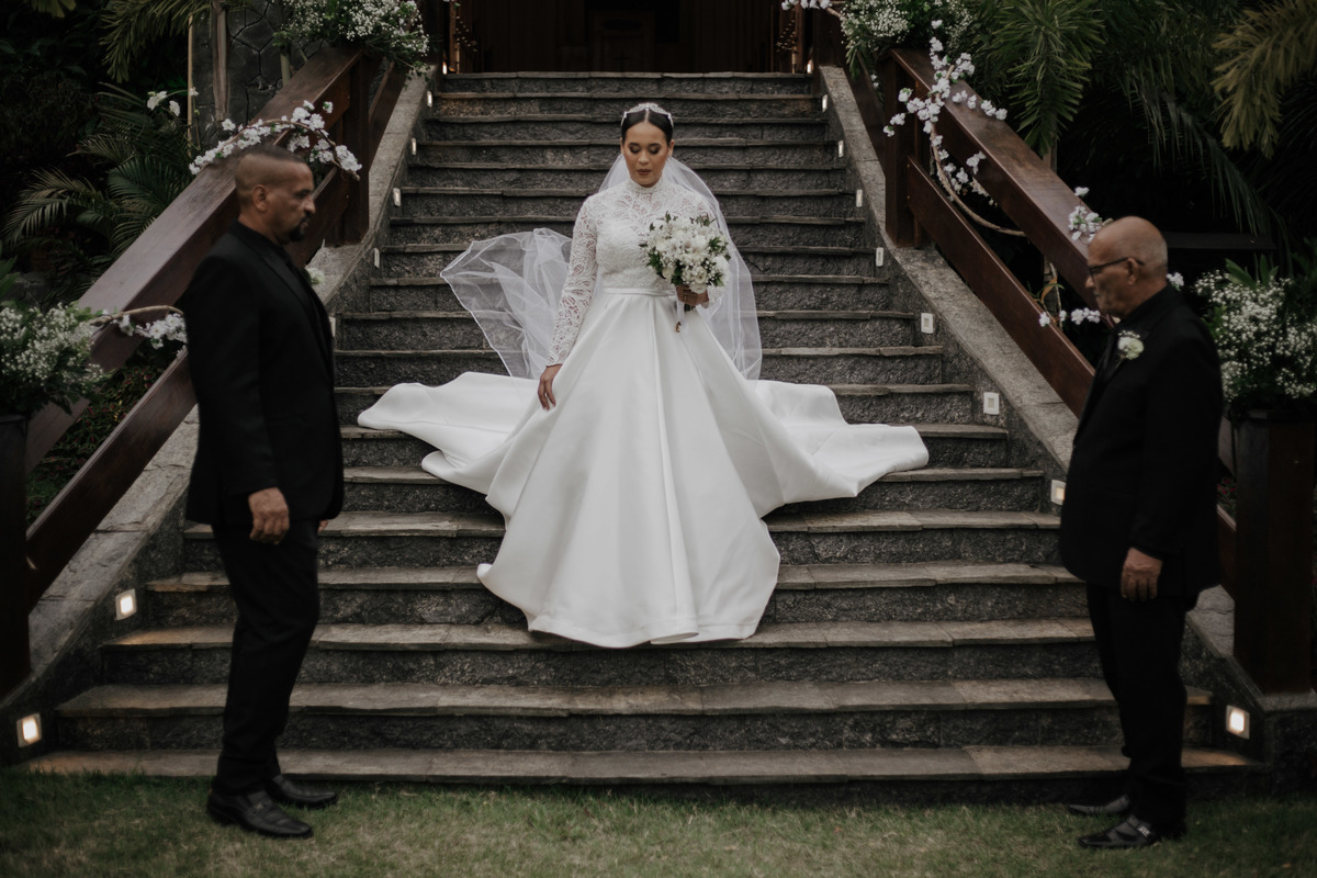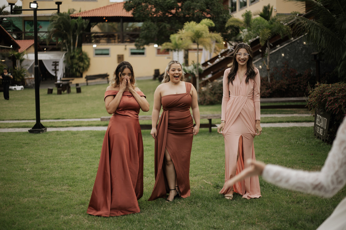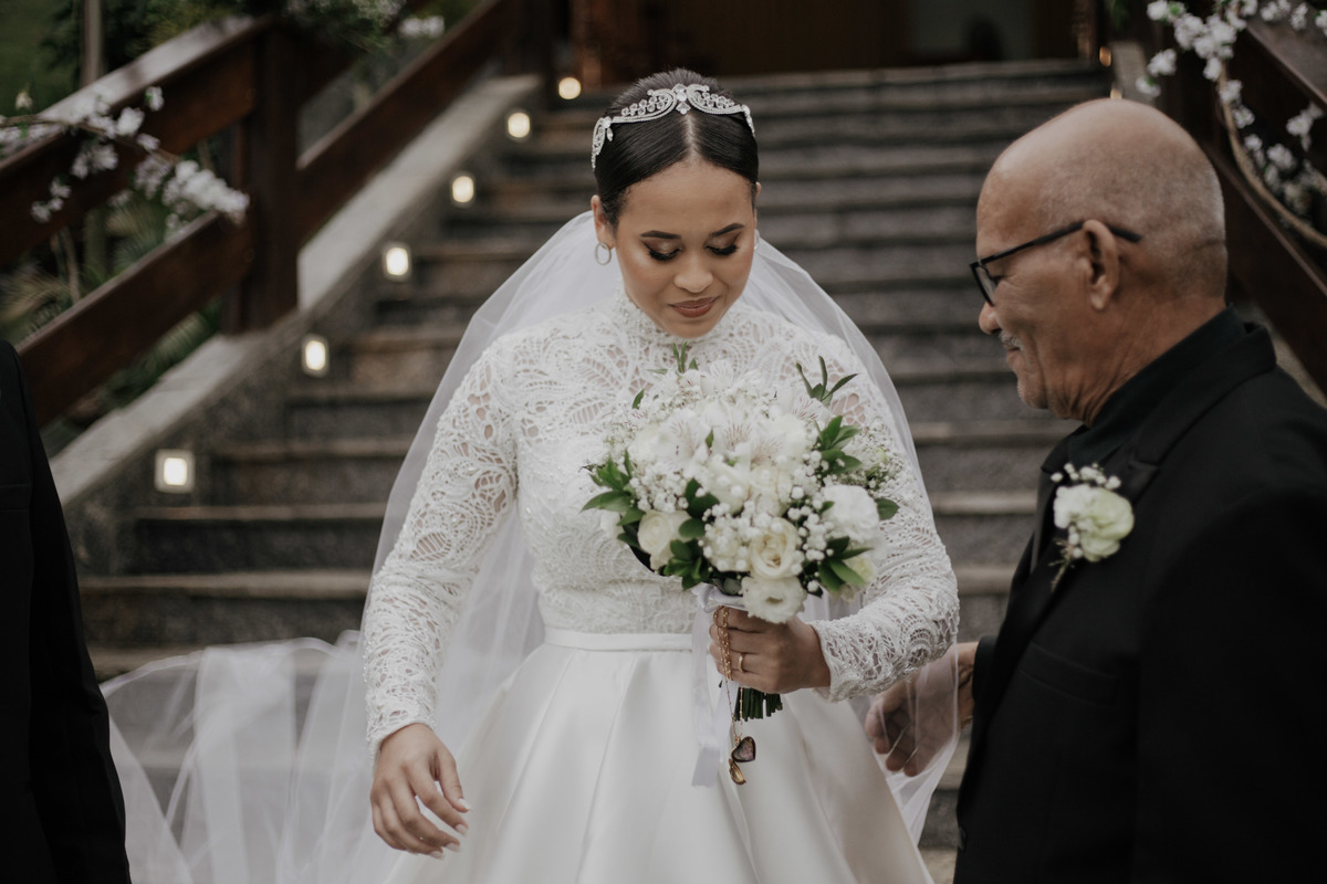 No grande dia aconteceu de TUDO: entrega de buquê, first look com as madrinhas e noiva pediu para que uma suas madrinhas orasse por ela, teve first touch com o noivo (muito emocionante inclusive aaaa), aconteceu entradas emocionantes por pessoas que eram joias paras os noivos, além de rolar uma festa cristã JAMAIS vistaaaaa por que foi SUPER SUPER SUPER animada com fotos no final com TODOS os convidados de um jeito diferente do tradicional (eles foram de mesa em mesa no tempo de uma musica para pularem esta parte mais cansativa das fotos e torna-las em algo divertido como eles) kkk