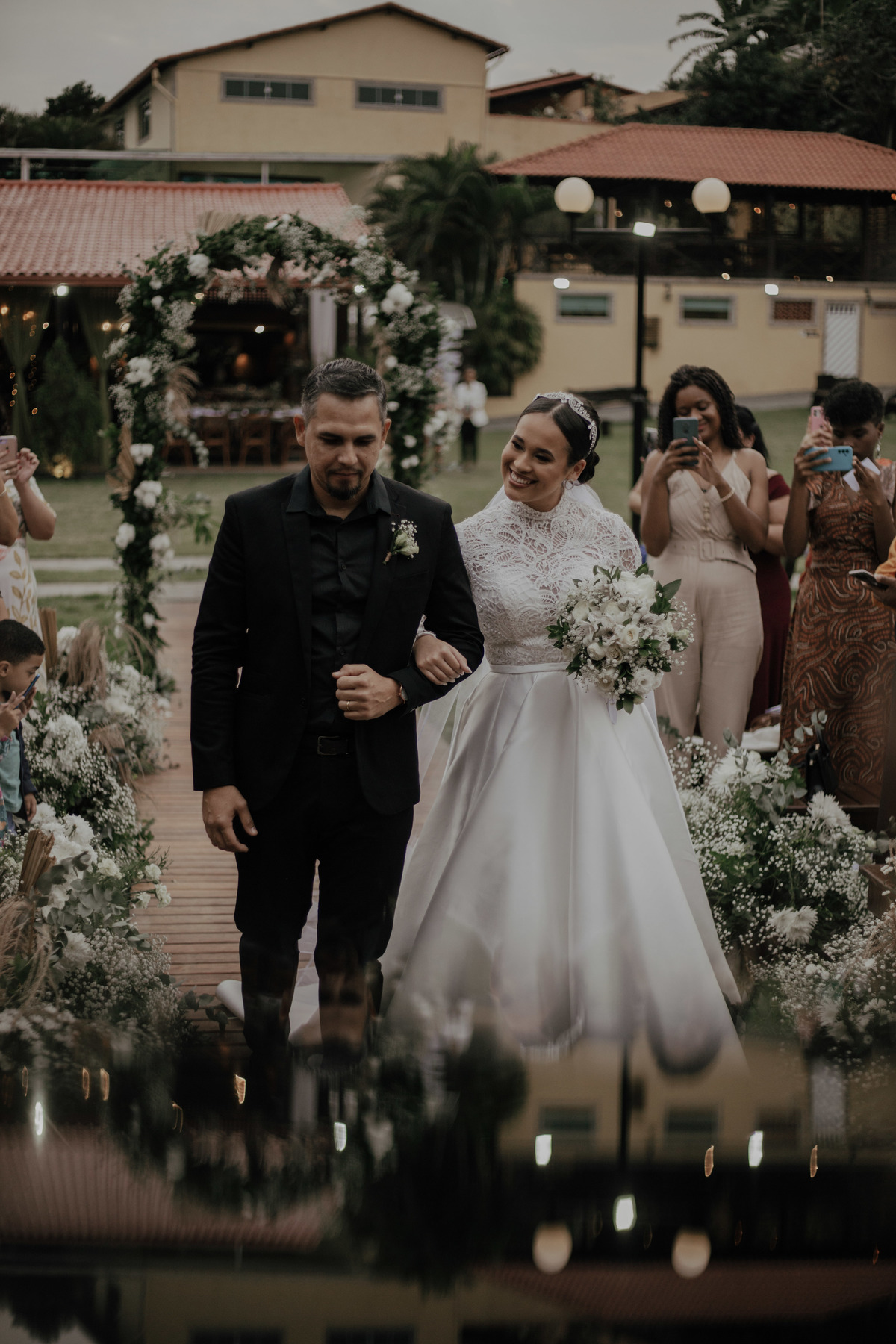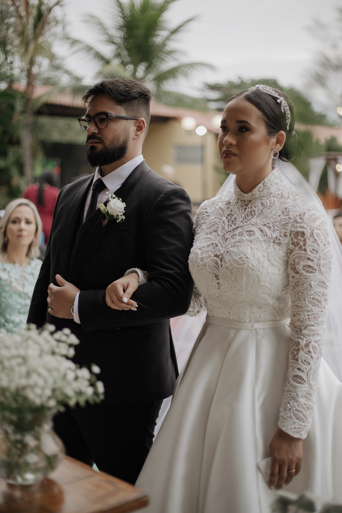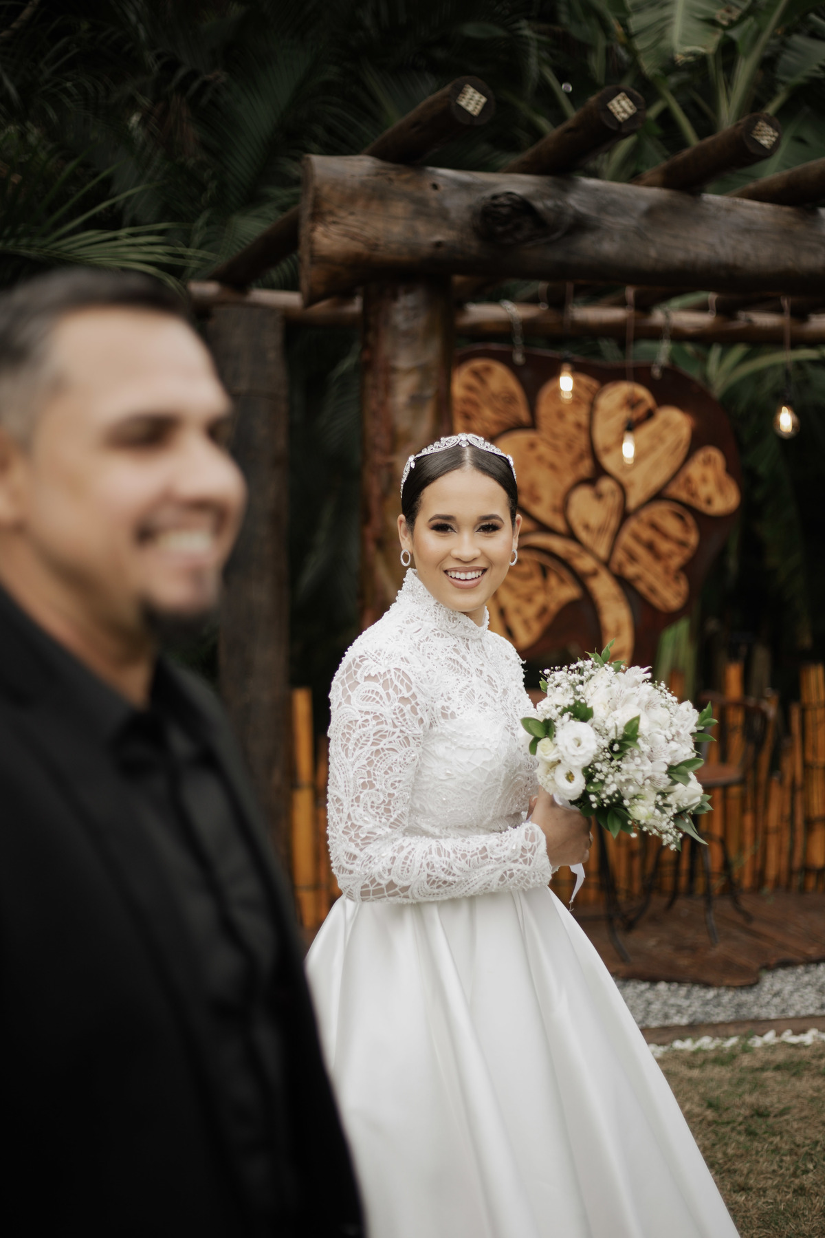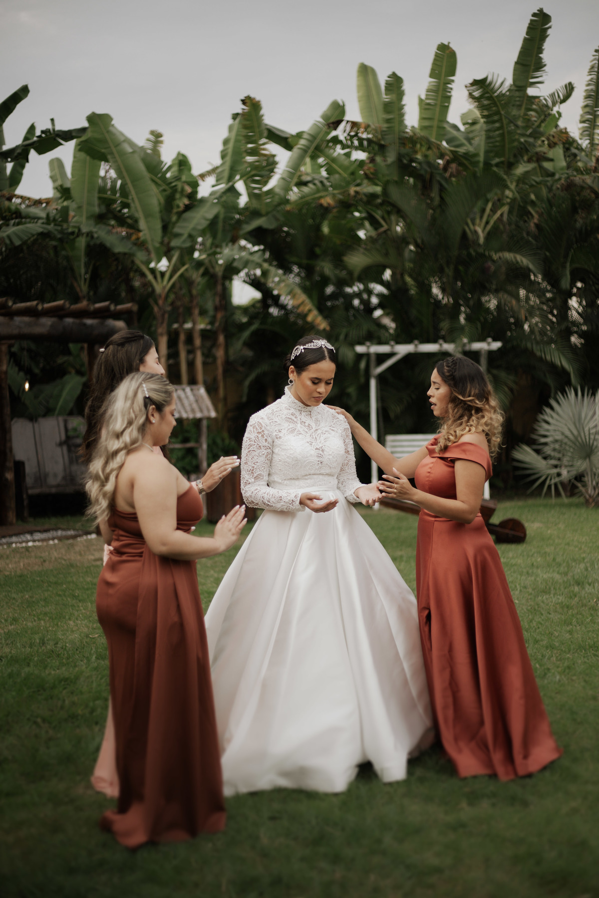 No grande dia aconteceu de TUDO: entrega de buquê, first look com as madrinhas e noiva pediu para que uma suas madrinhas orasse por ela, teve first touch com o noivo (muito emocionante inclusive aaaa), aconteceu entradas emocionantes por pessoas que eram joias paras os noivos, além de rolar uma festa cristã JAMAIS vistaaaaa por que foi SUPER SUPER SUPER animada com fotos no final com TODOS os convidados de um jeito diferente do tradicional (eles foram de mesa em mesa no tempo de uma musica para pularem esta parte mais cansativa das fotos e torna-las em algo divertido como eles) kkk
