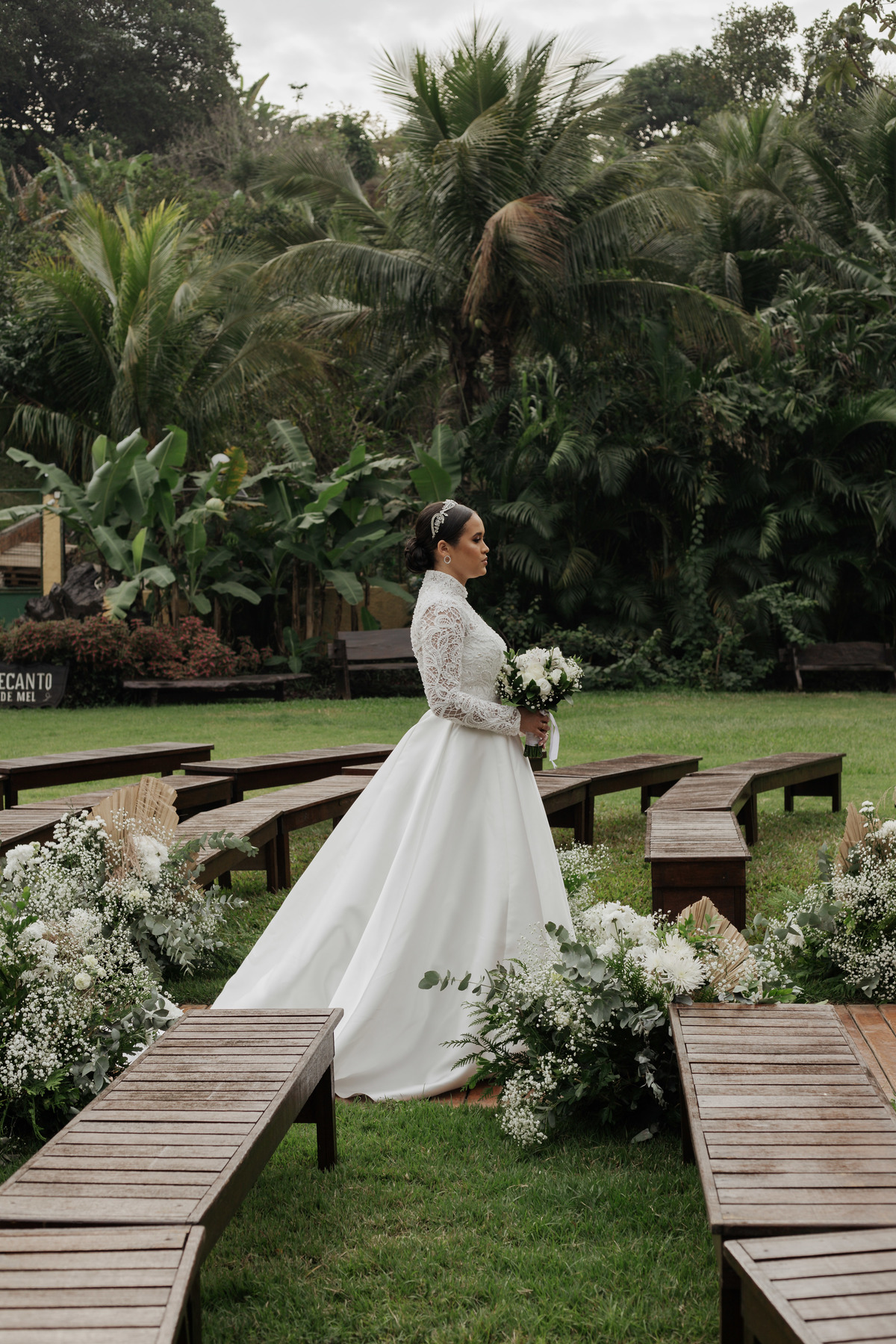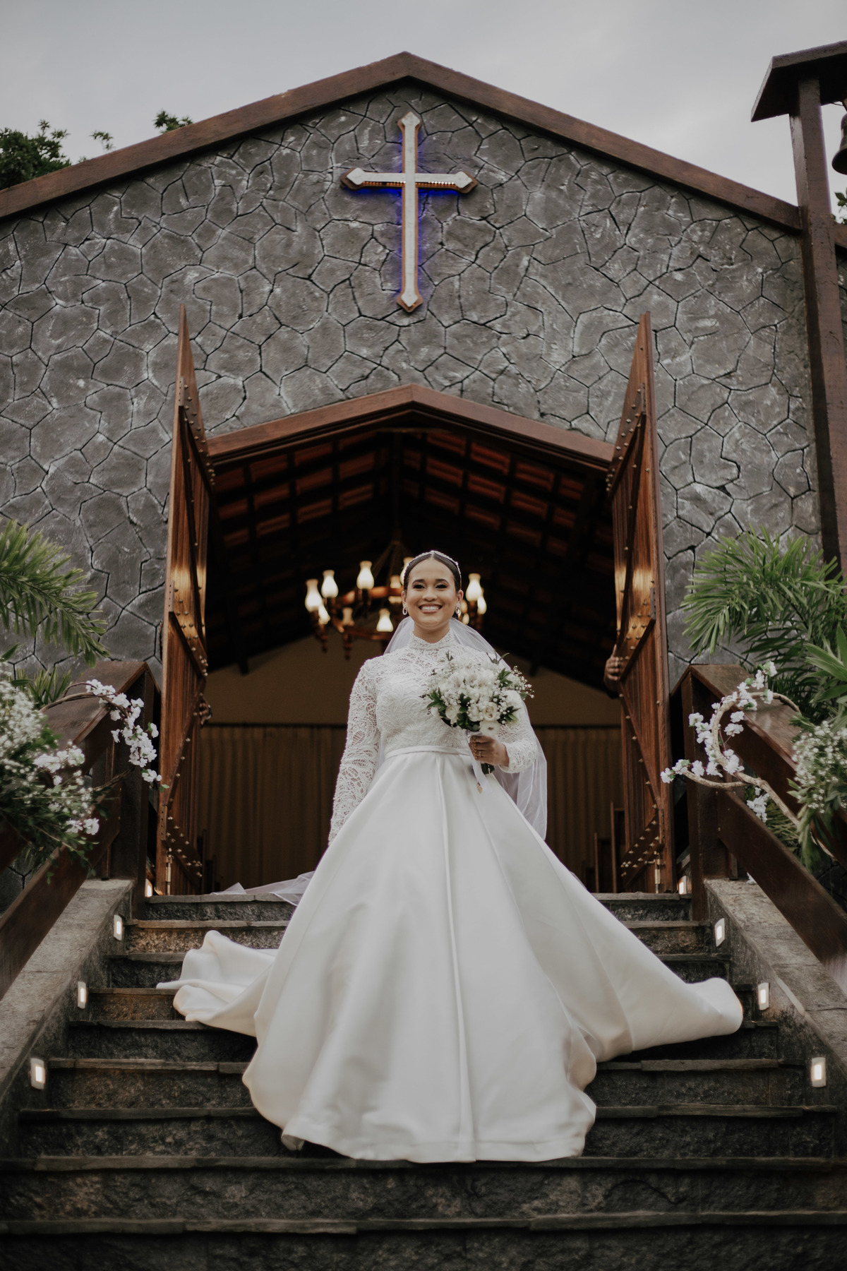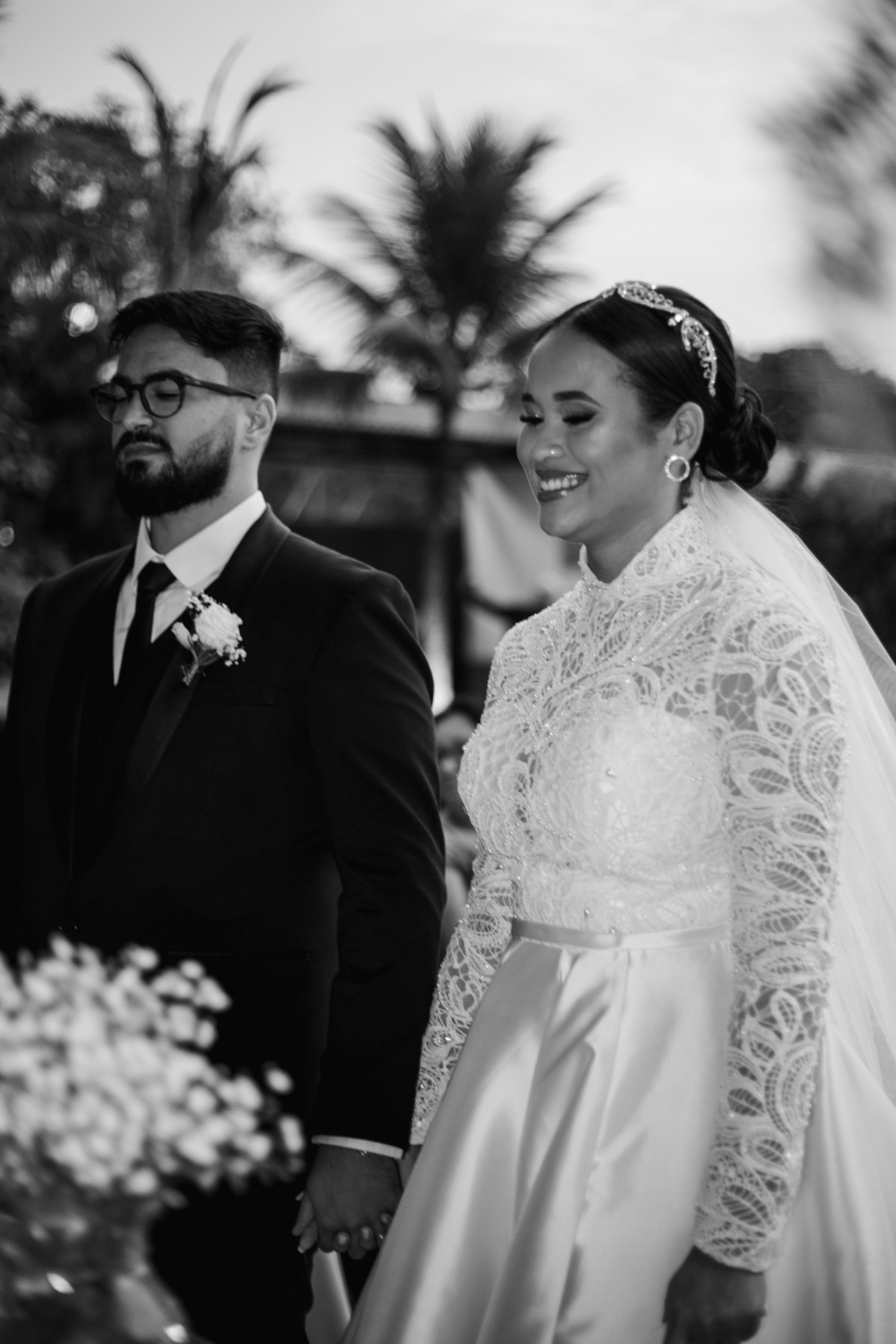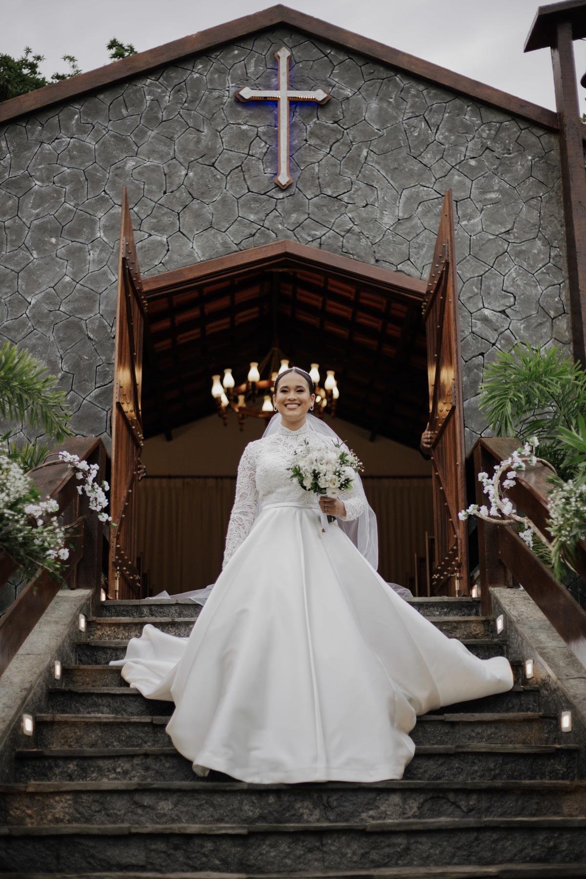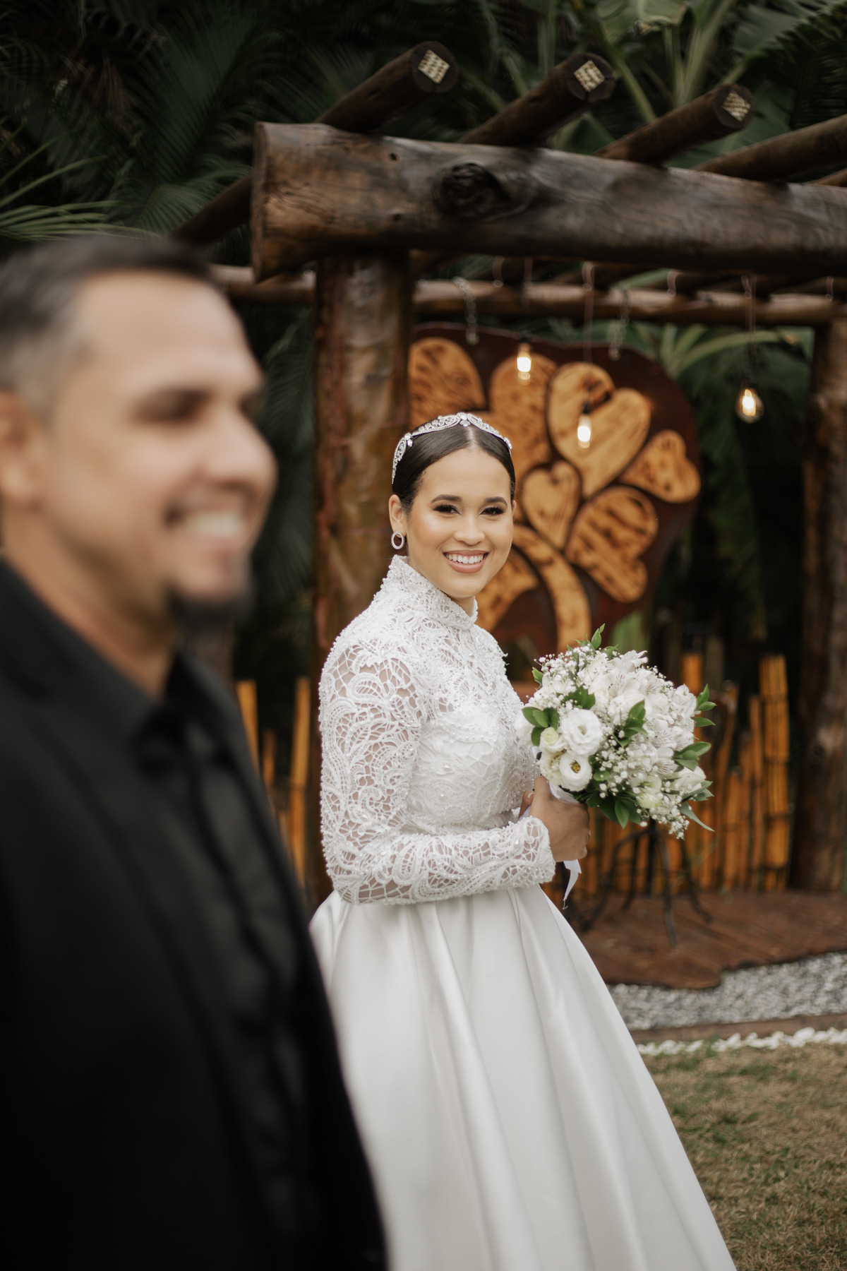 No grande dia aconteceu de TUDO: entrega de buquê, first look com as madrinhas e noiva pediu para que uma suas madrinhas orasse por ela, teve first touch com o noivo (muito emocionante inclusive aaaa), aconteceu entradas emocionantes por pessoas que eram joias paras os noivos, além de rolar uma festa cristã JAMAIS vistaaaaa por que foi SUPER SUPER SUPER animada com fotos no final com TODOS os convidados de um jeito diferente do tradicional (eles foram de mesa em mesa no tempo de uma musica para pularem esta parte mais cansativa das fotos e torna-las em algo divertido como eles) kkk