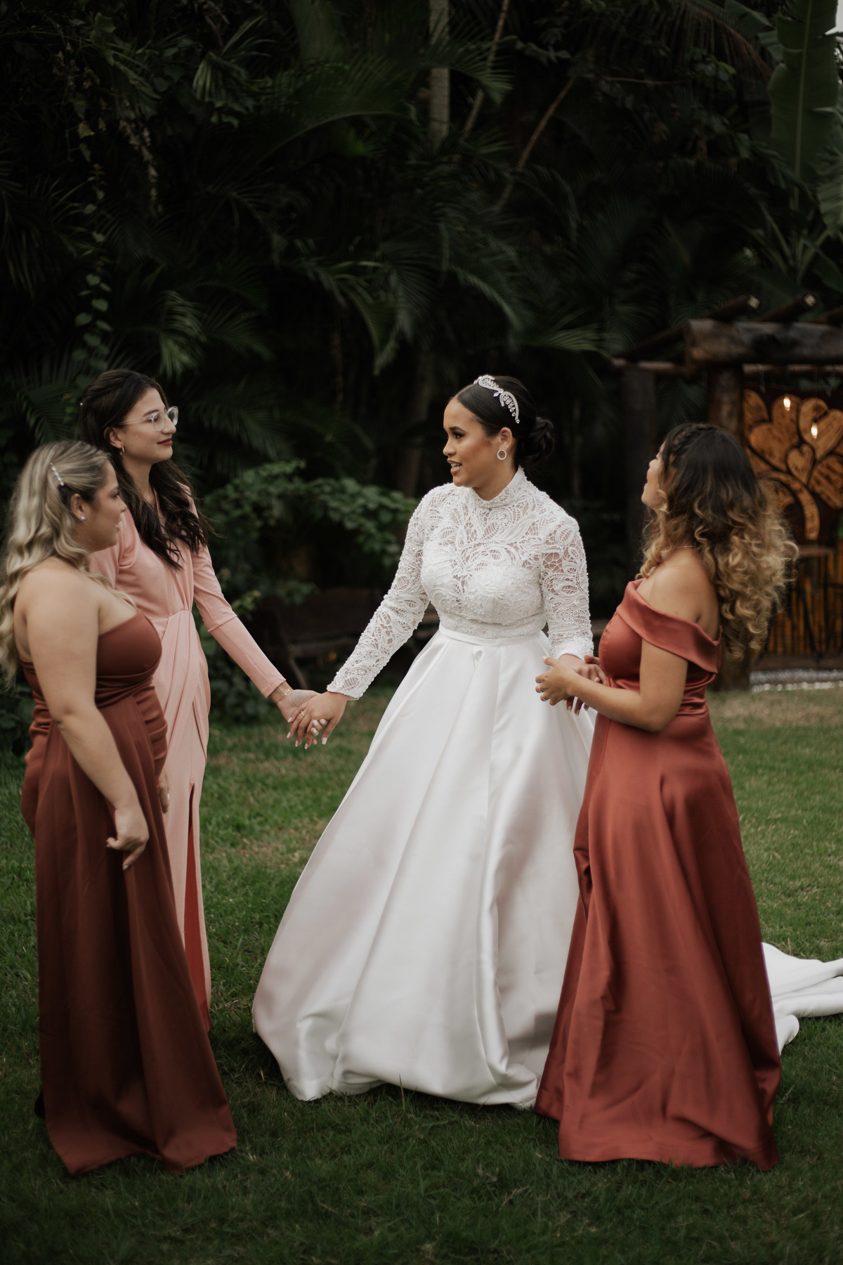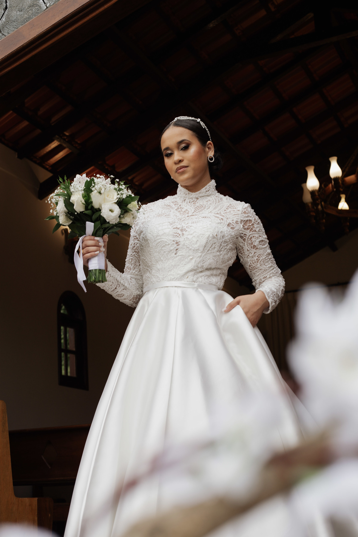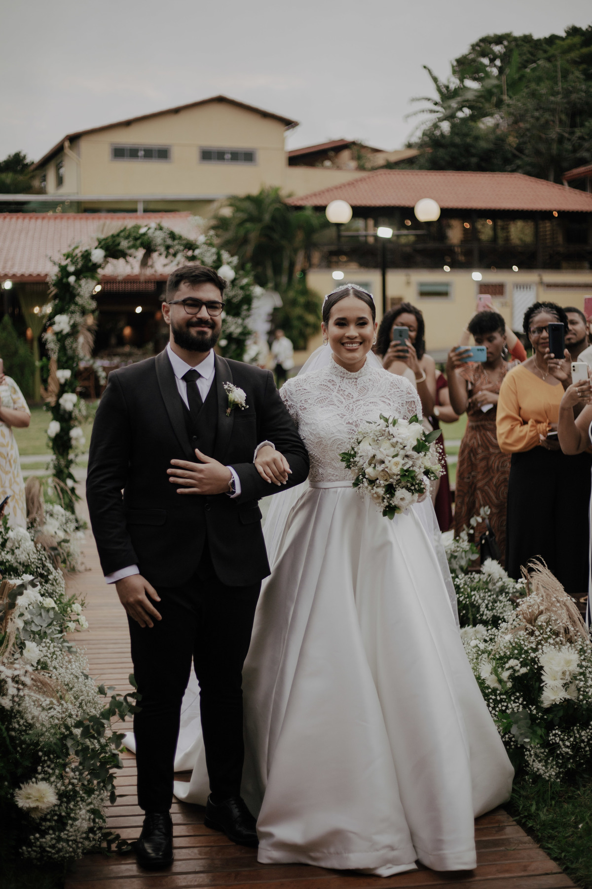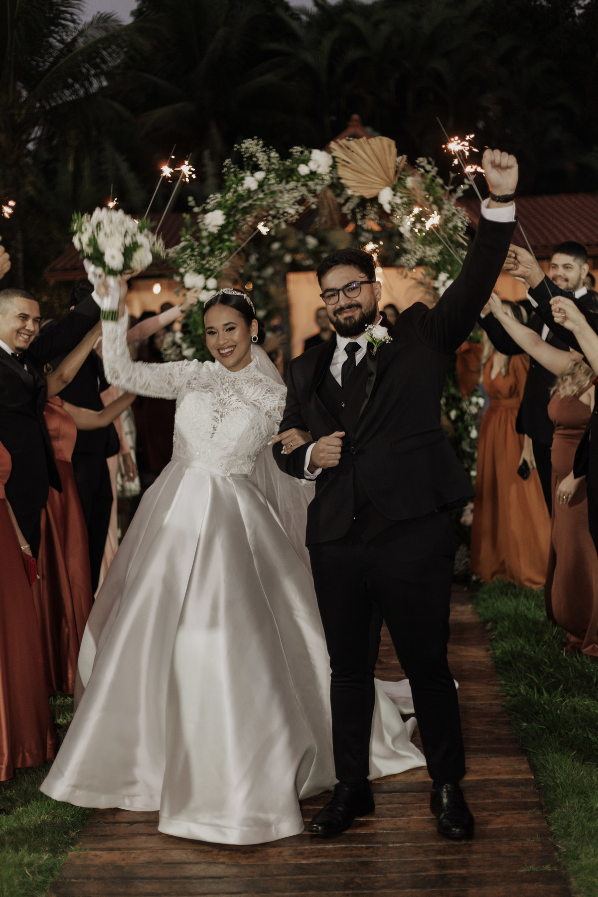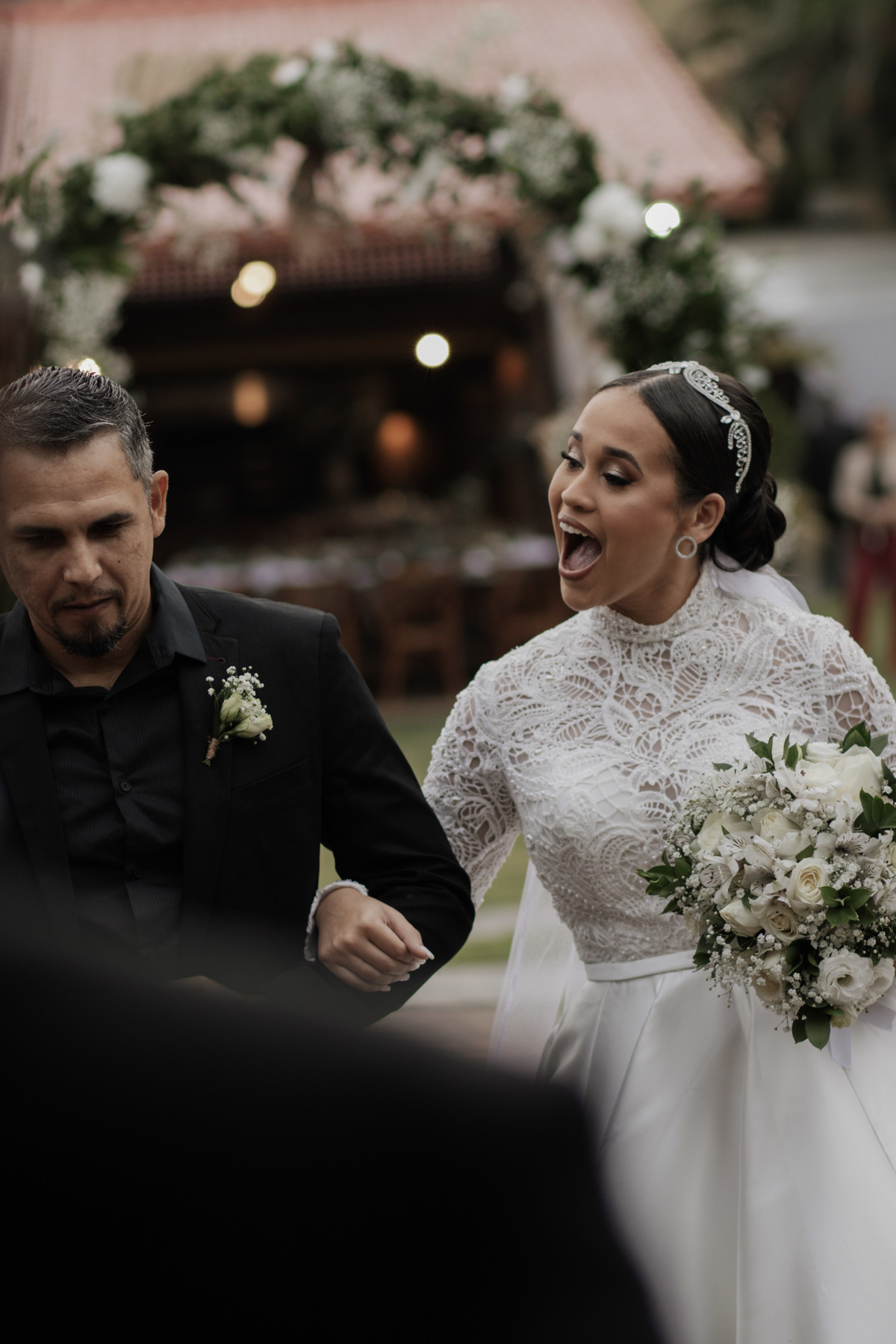 No grande dia aconteceu de TUDO: entrega de buquê, first look com as madrinhas e noiva pediu para que uma suas madrinhas orasse por ela, teve first touch com o noivo (muito emocionante inclusive aaaa), aconteceu entradas emocionantes por pessoas que eram joias paras os noivos, além de rolar uma festa cristã JAMAIS vistaaaaa por que foi SUPER SUPER SUPER animada com fotos no final com TODOS os convidados de um jeito diferente do tradicional (eles foram de mesa em mesa no tempo de uma musica para pularem esta parte mais cansativa das fotos e torna-las em algo divertido como eles) kkk