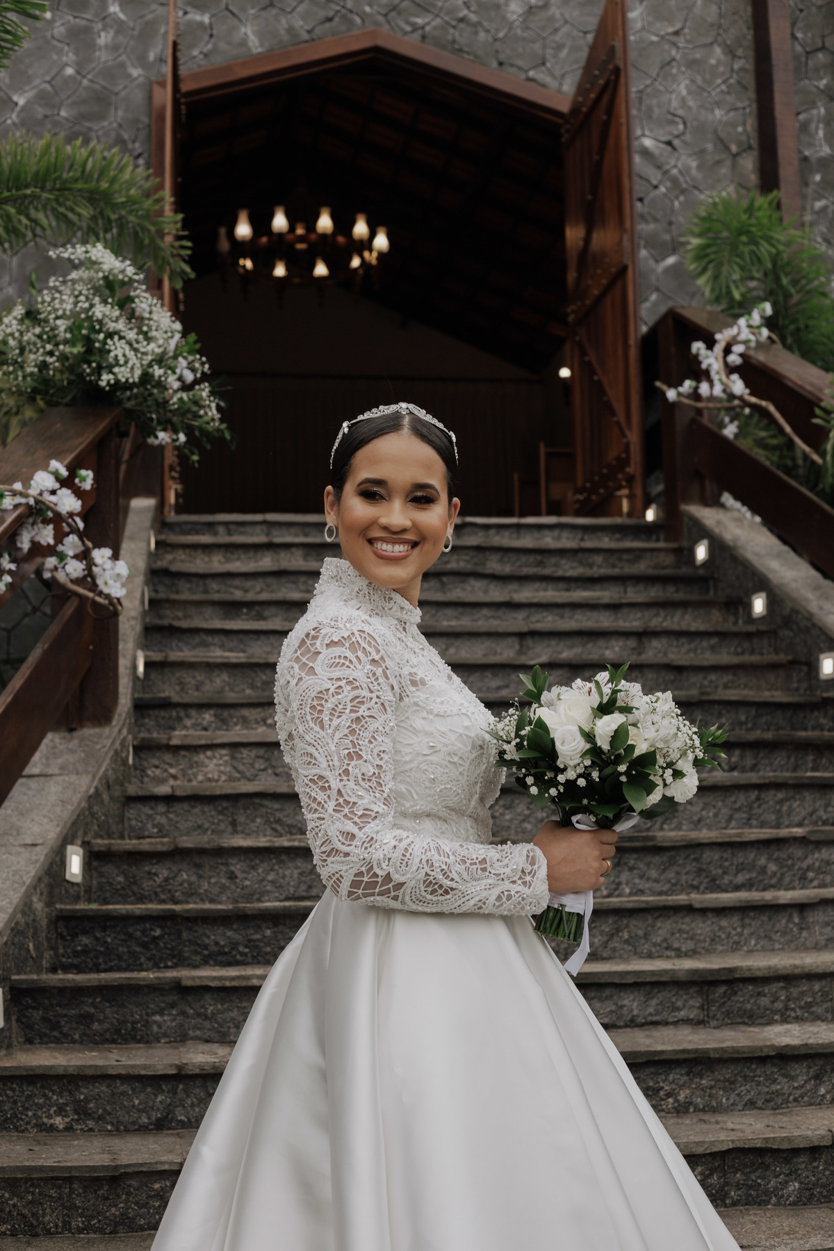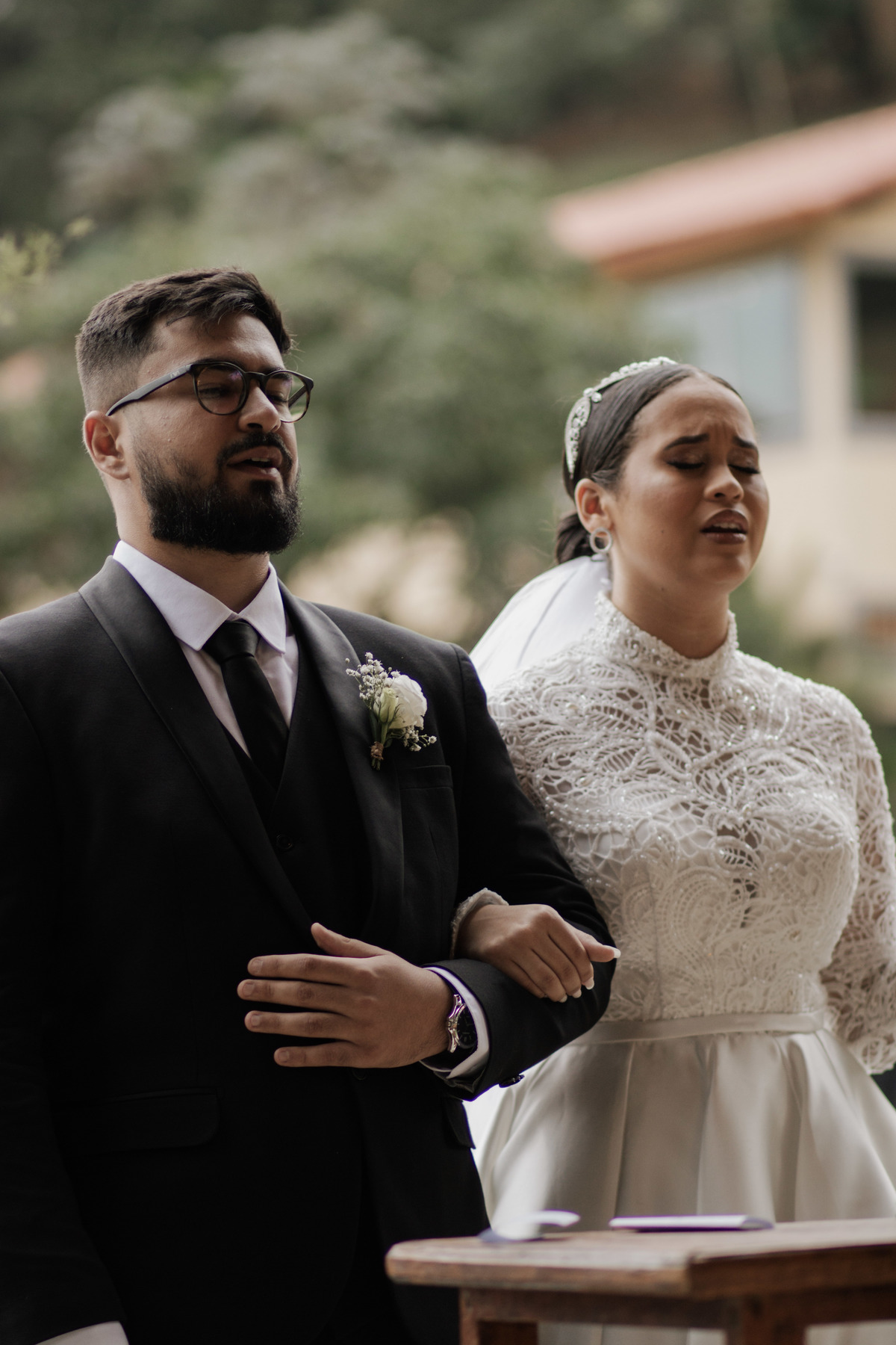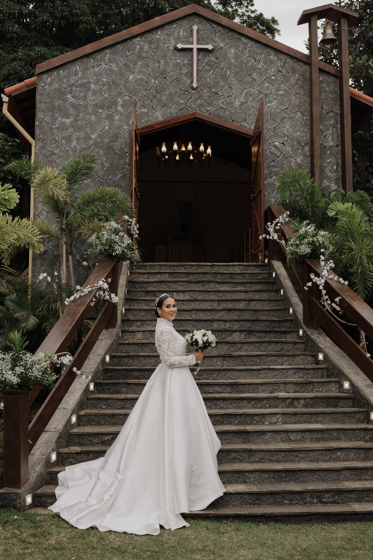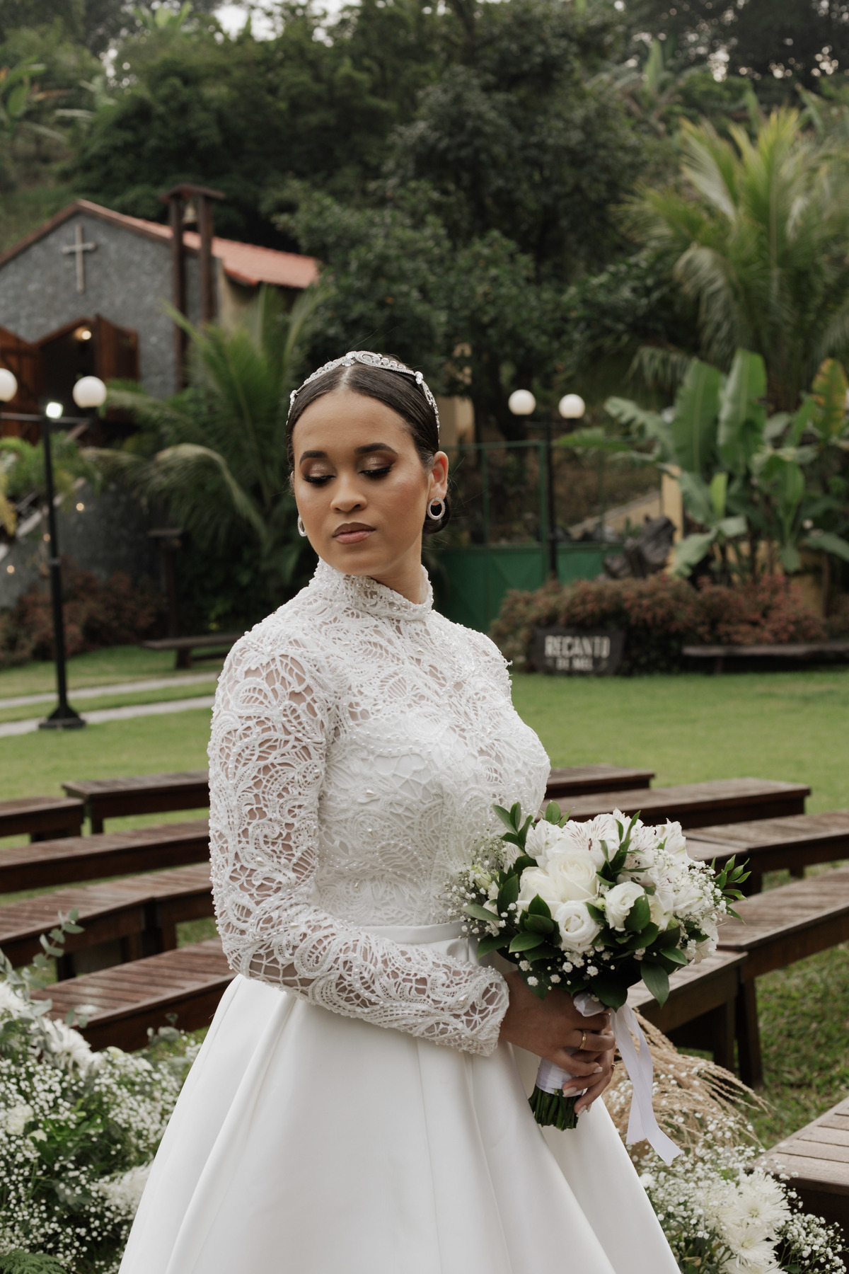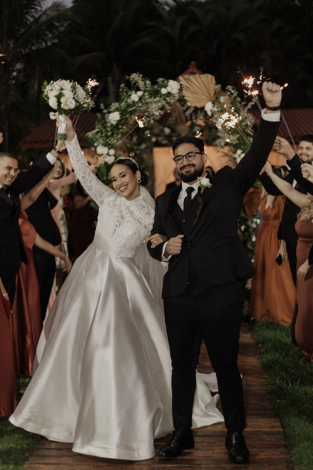 No grande dia aconteceu de TUDO: entrega de buquê, first look com as madrinhas e noiva pediu para que uma suas madrinhas orasse por ela, teve first touch com o noivo (muito emocionante inclusive aaaa), aconteceu entradas emocionantes por pessoas que eram joias paras os noivos, além de rolar uma festa cristã JAMAIS vistaaaaa por que foi SUPER SUPER SUPER animada com fotos no final com TODOS os convidados de um jeito diferente do tradicional (eles foram de mesa em mesa no tempo de uma musica para pularem esta parte mais cansativa das fotos e torna-las em algo divertido como eles) kkk