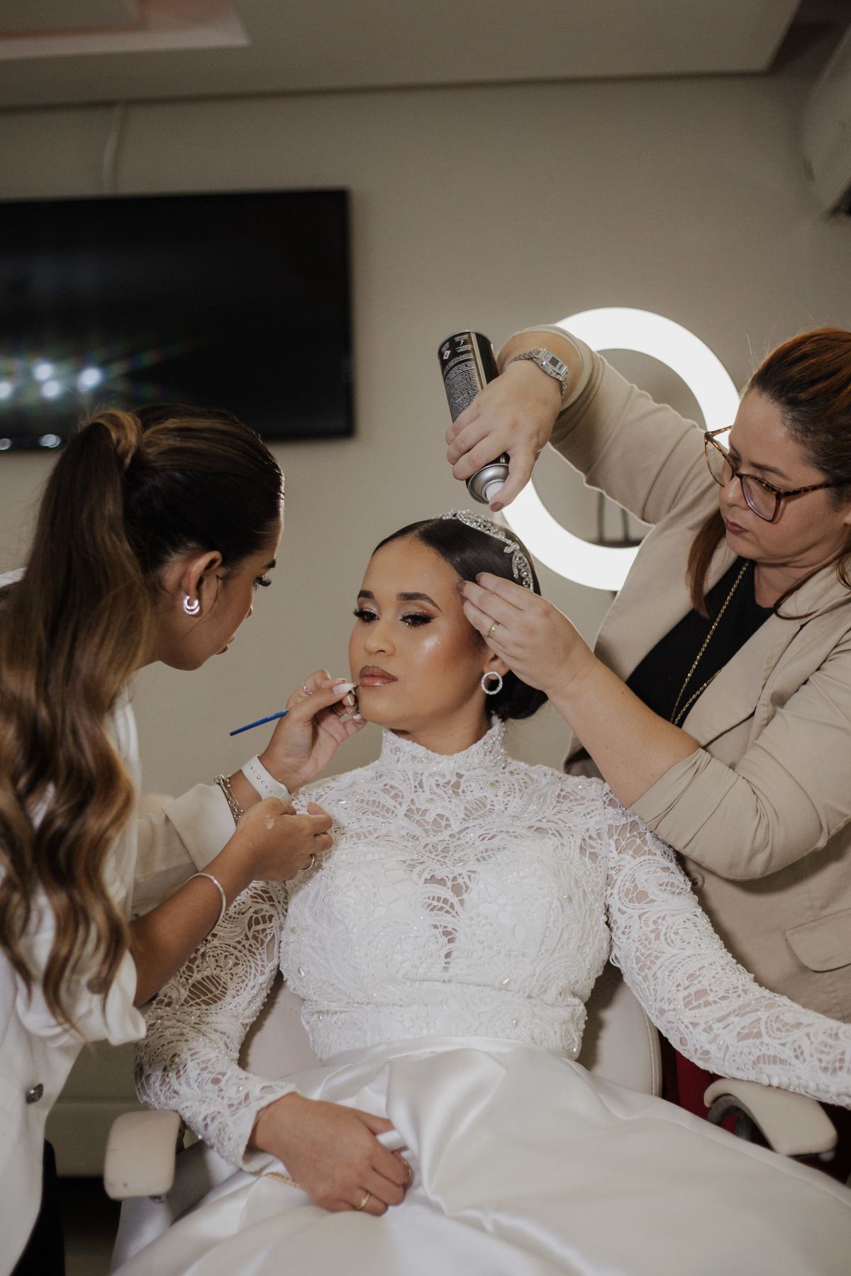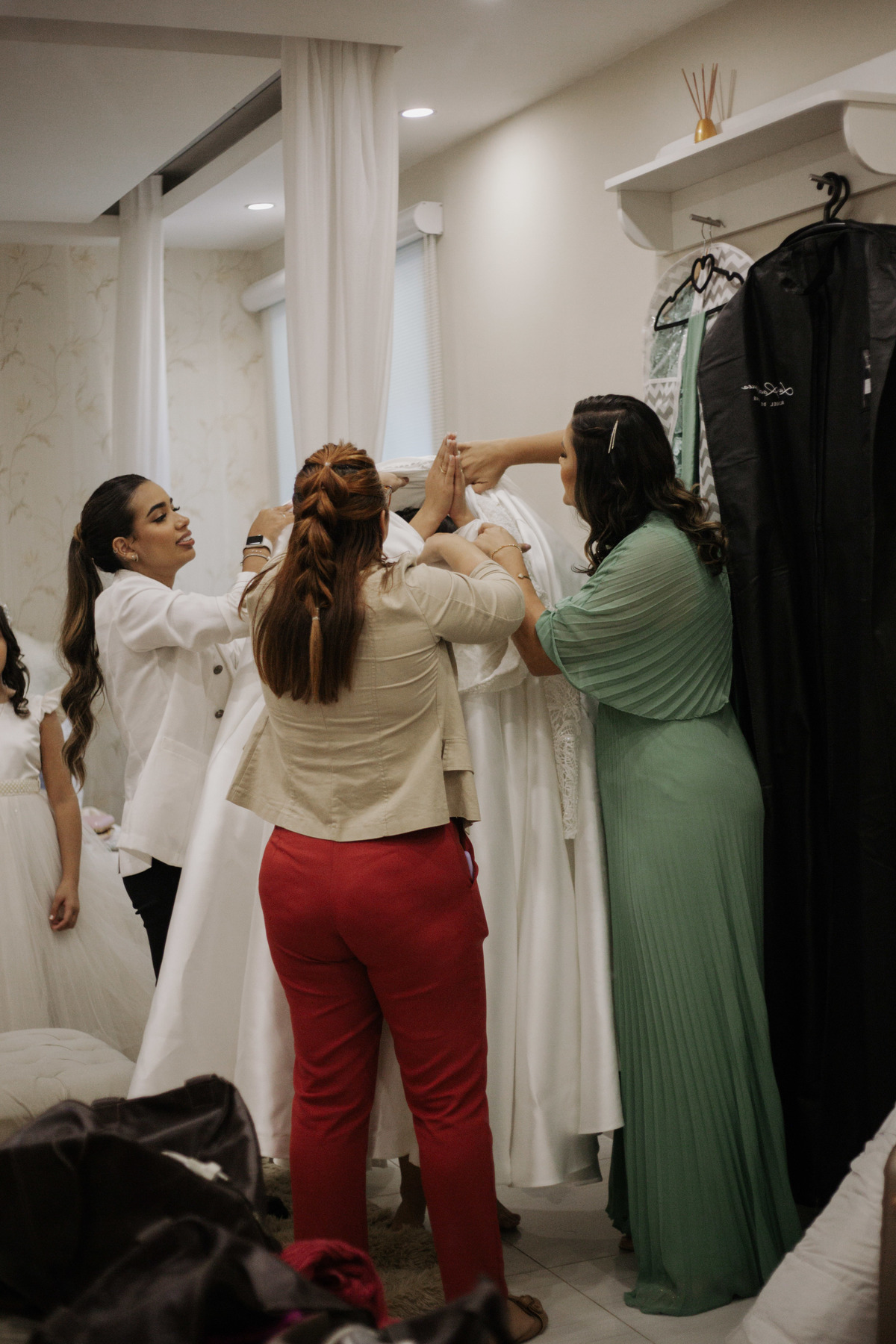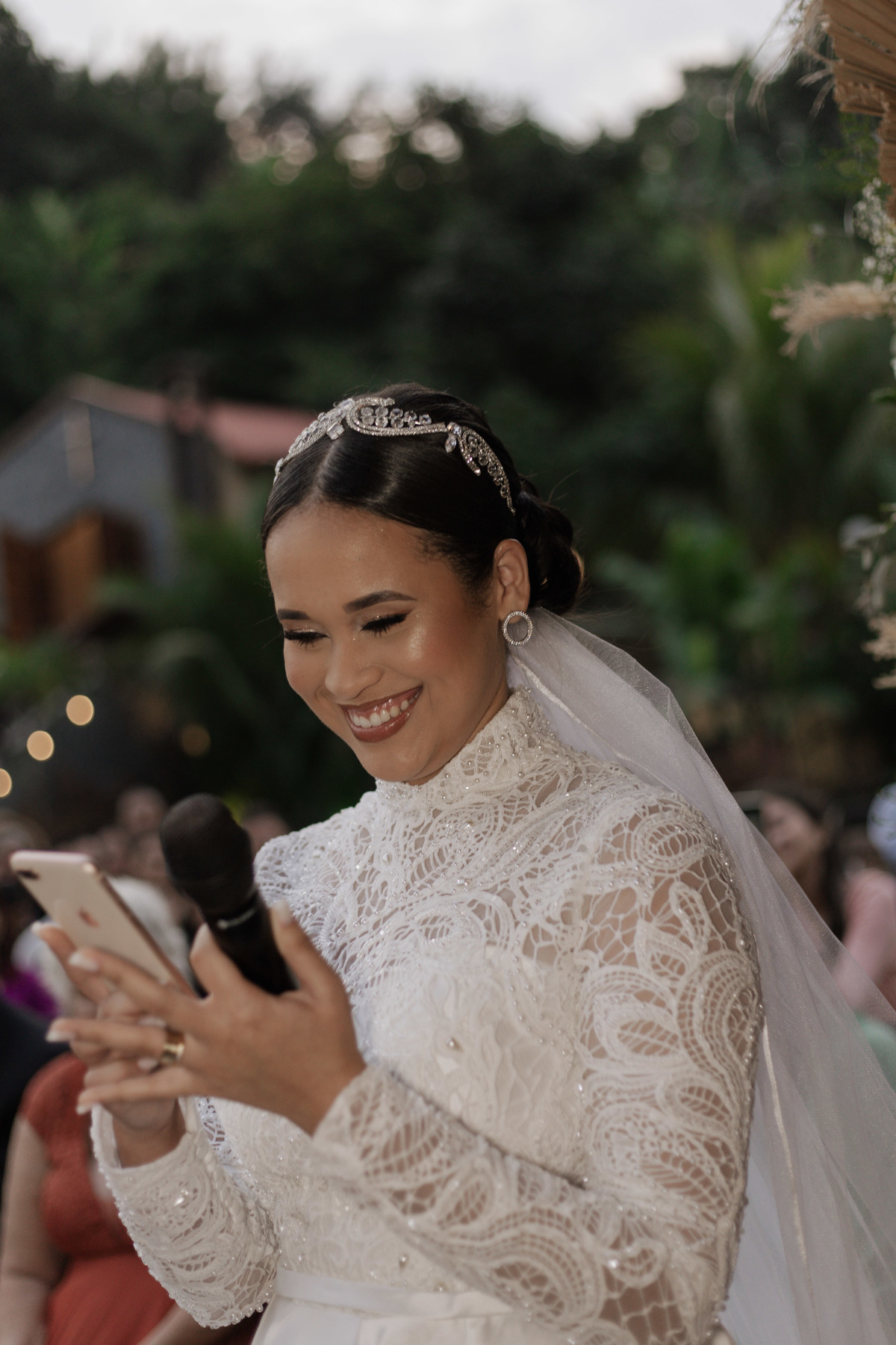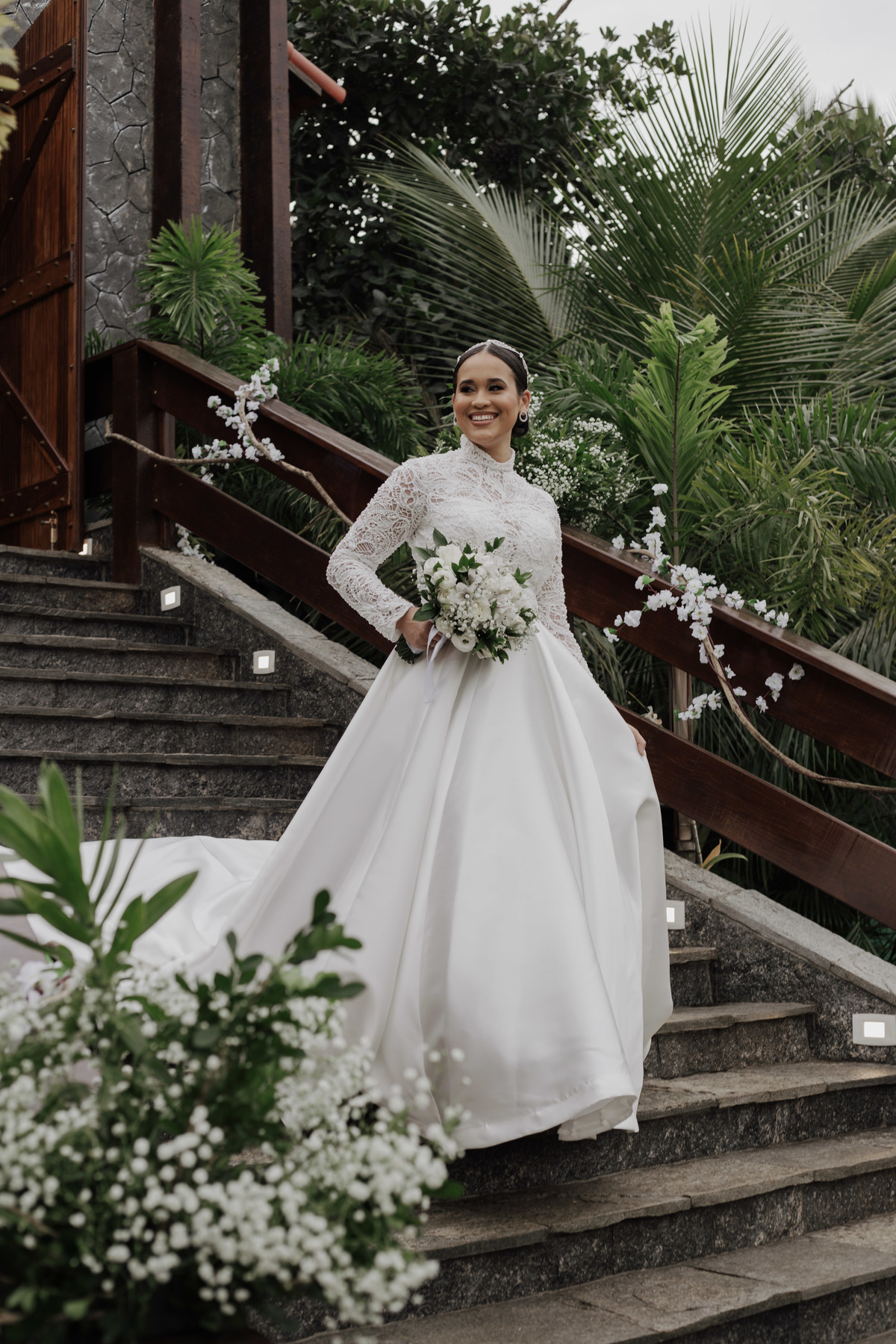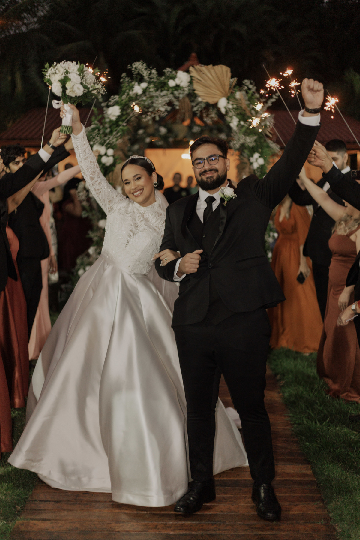 No grande dia aconteceu de TUDO: entrega de buquê, first look com as madrinhas e noiva pediu para que uma suas madrinhas orasse por ela, teve first touch com o noivo (muito emocionante inclusive aaaa), aconteceu entradas emocionantes por pessoas que eram joias paras os noivos, além de rolar uma festa cristã JAMAIS vistaaaaa por que foi SUPER SUPER SUPER animada com fotos no final com TODOS os convidados de um jeito diferente do tradicional (eles foram de mesa em mesa no tempo de uma musica para pularem esta parte mais cansativa das fotos e torna-las em algo divertido como eles) kkk